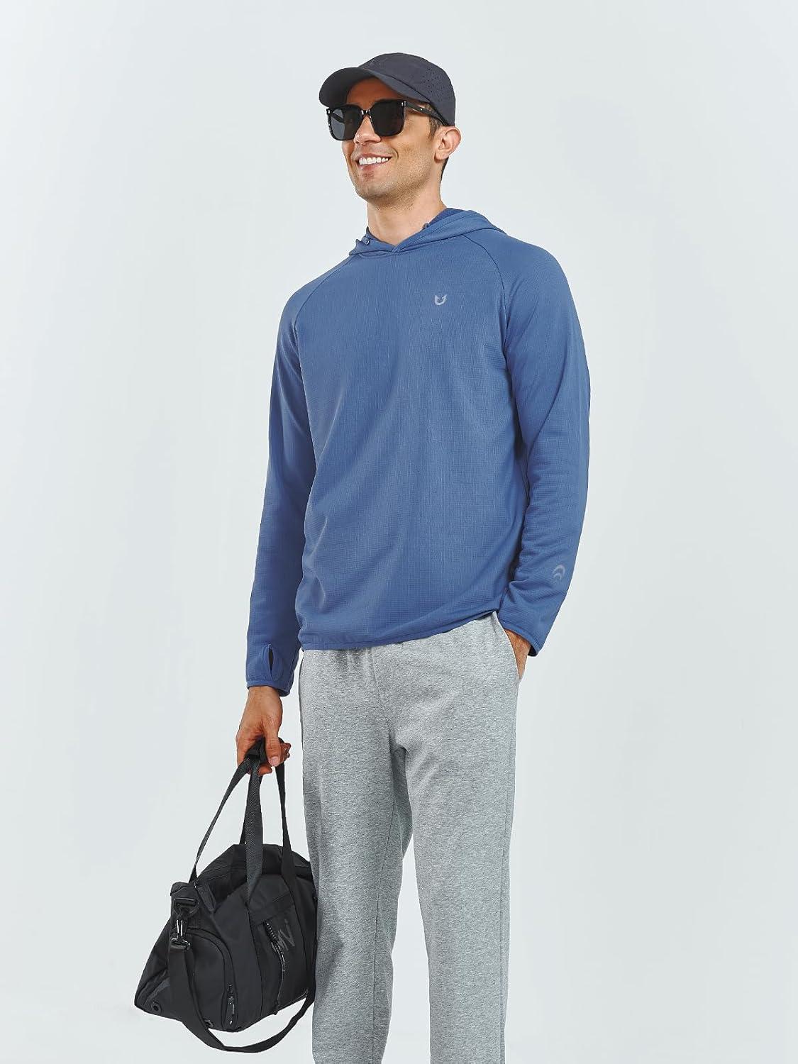 NORTHYARD Men’s Athletic Hoodie Shirts Lightweight Fleece Pullover Long Sleeve Workout Thermal Hooded Sweatshirts Gym Casual(Dustyblue)