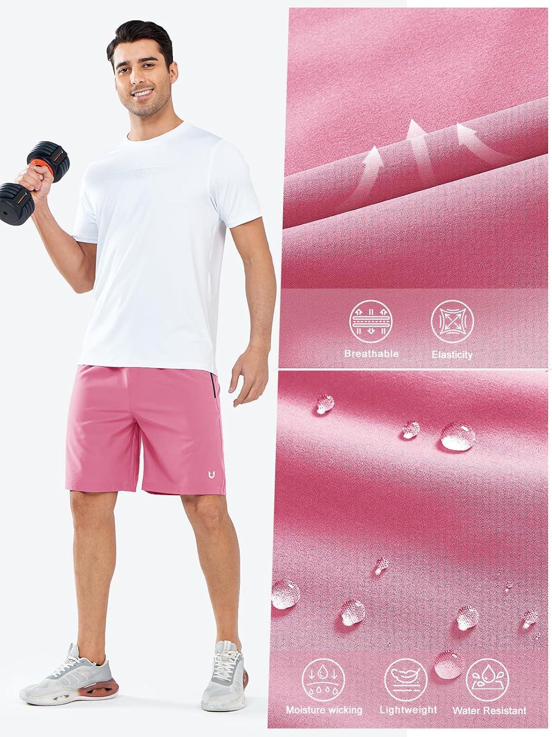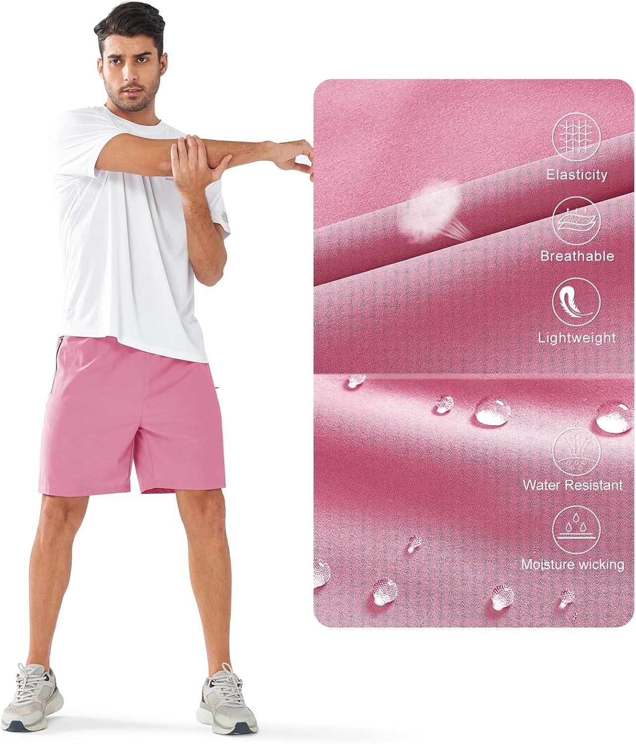 NORTHYARD Men’s Athletic Running Shorts Quick Dry Workout Shorts Lightweight Sports Gym Basketball 7″/ 9″/ 5″ Tennis Hiking(Powderpink)