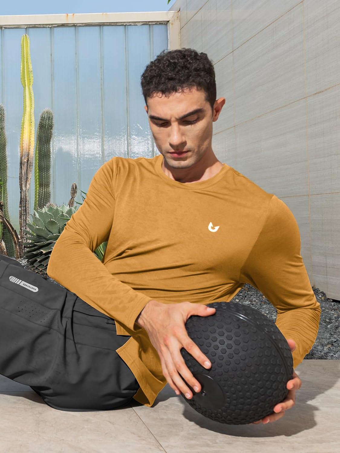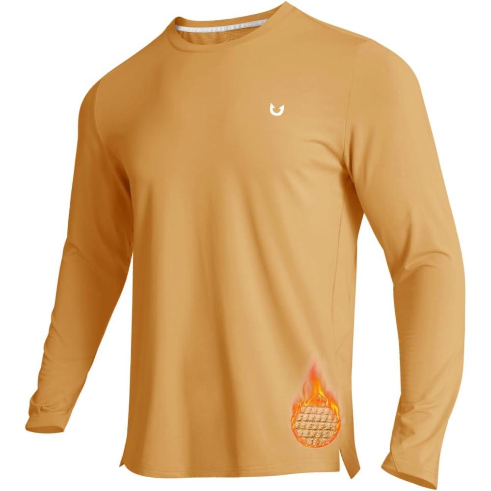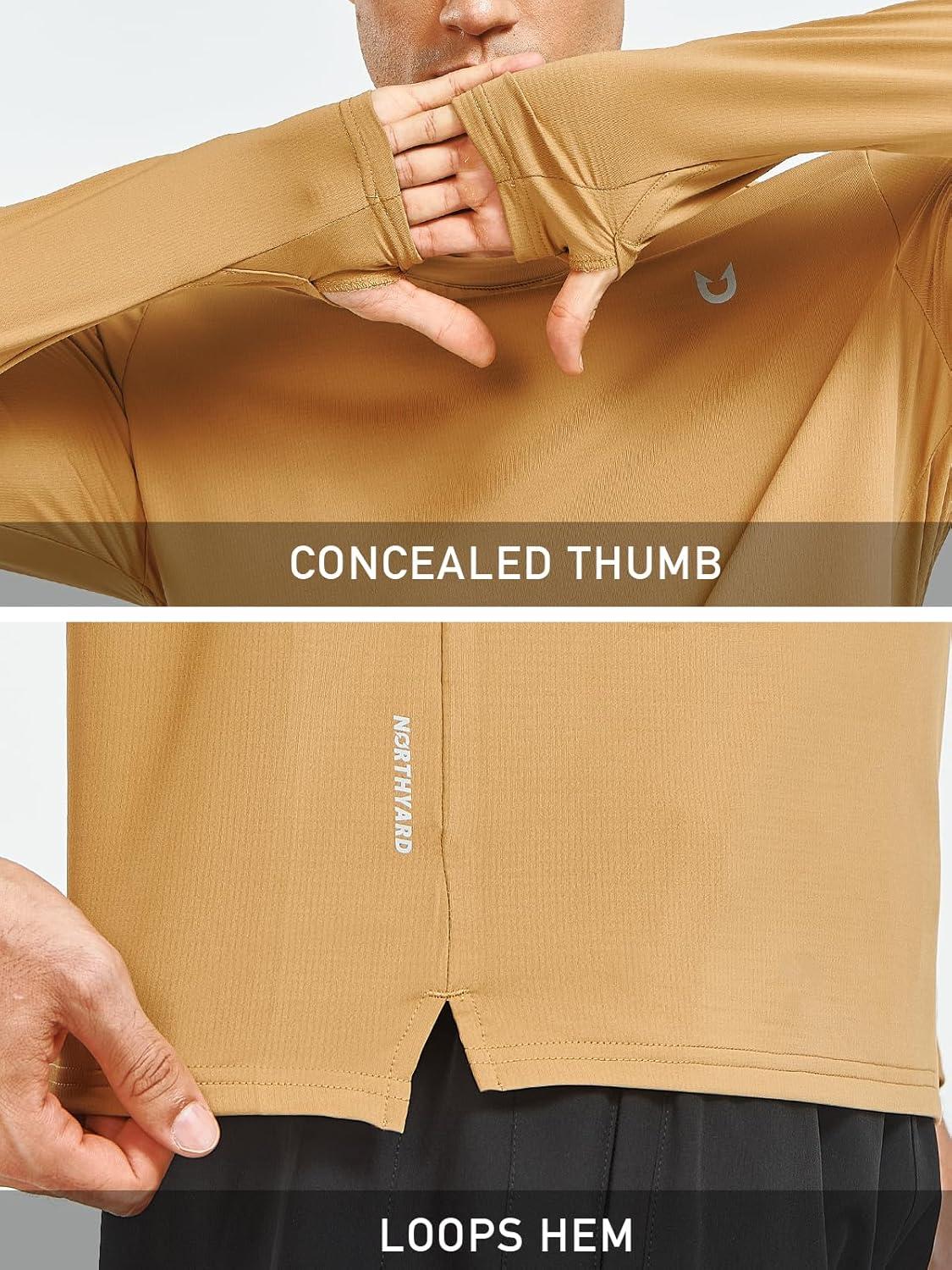 NORTHYARD Mens Athletic Shirt Thermal Shirts Fleece Lined Long Sleeve T-Shirts Crewneck Workout Running Sports(Dark Khaki)