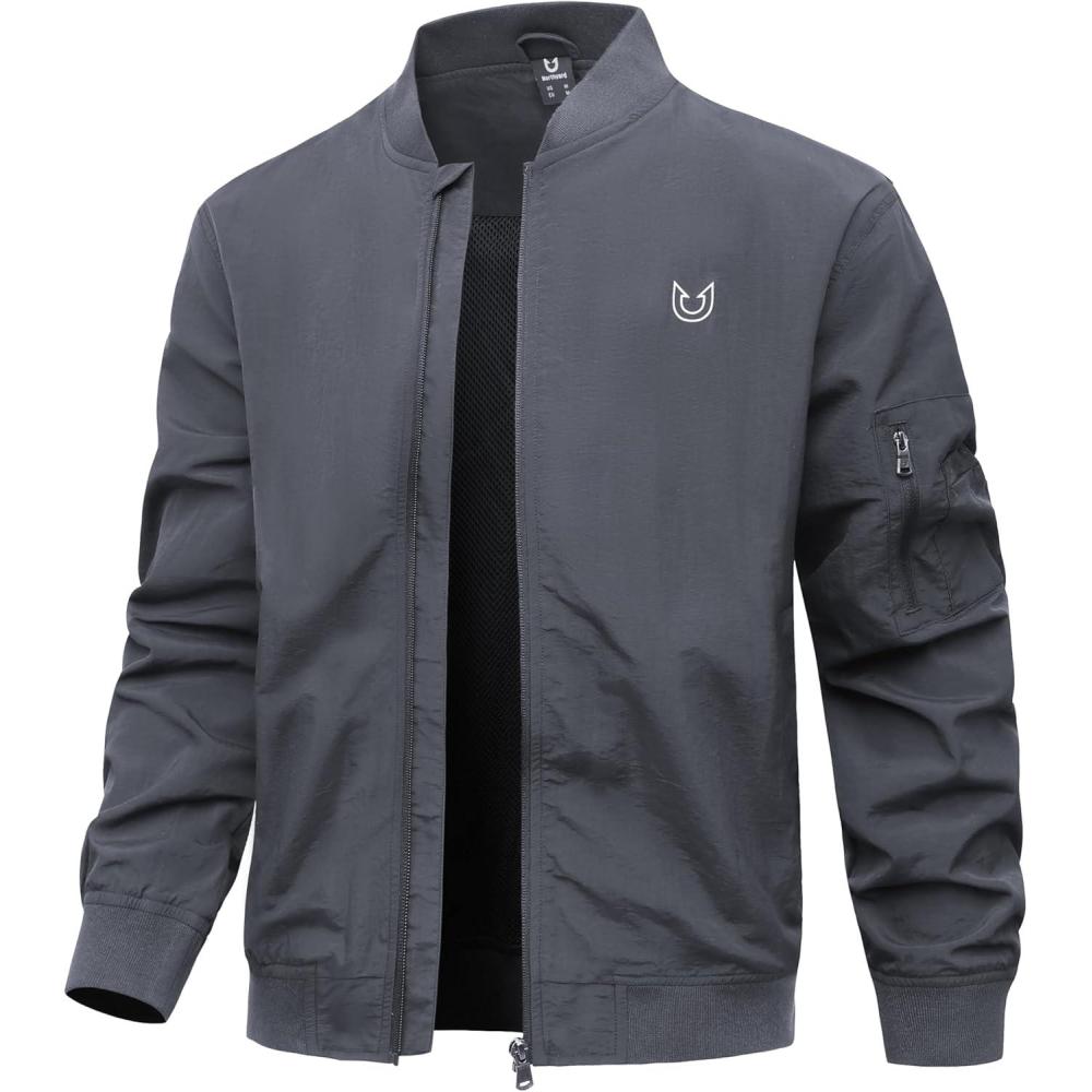 NORTHYARD Men’s Bomber Jacket Lightweight Casual Windbreaker Zip Up Fashion Windproof Coat Spring Fall(Darkgrey)