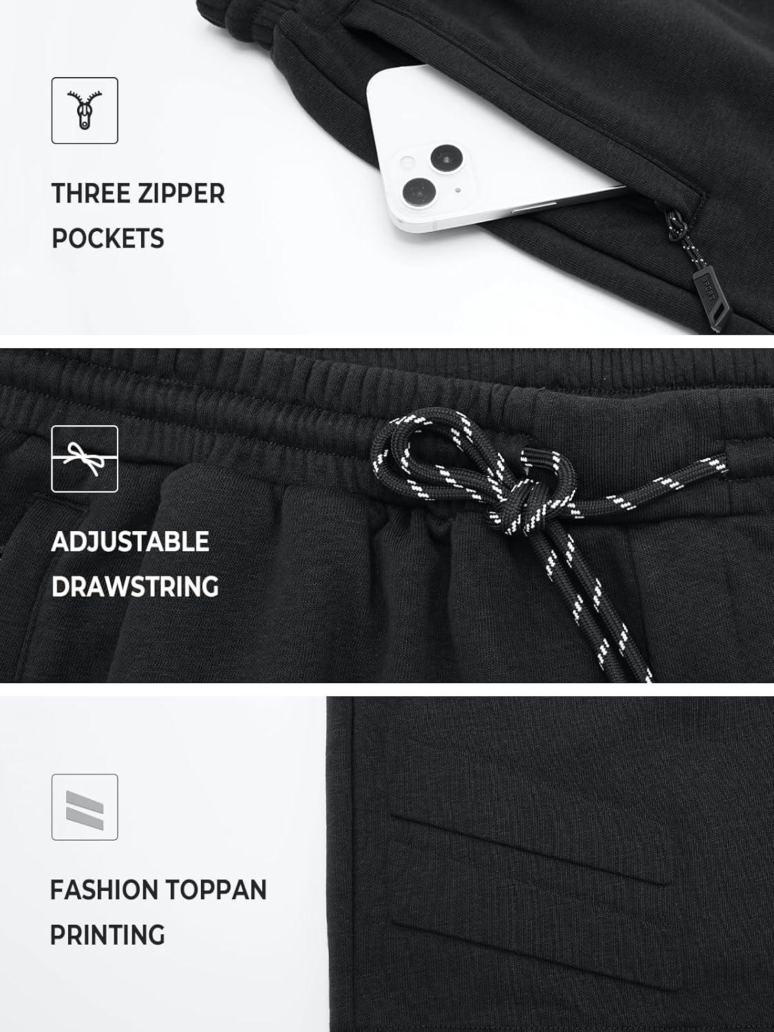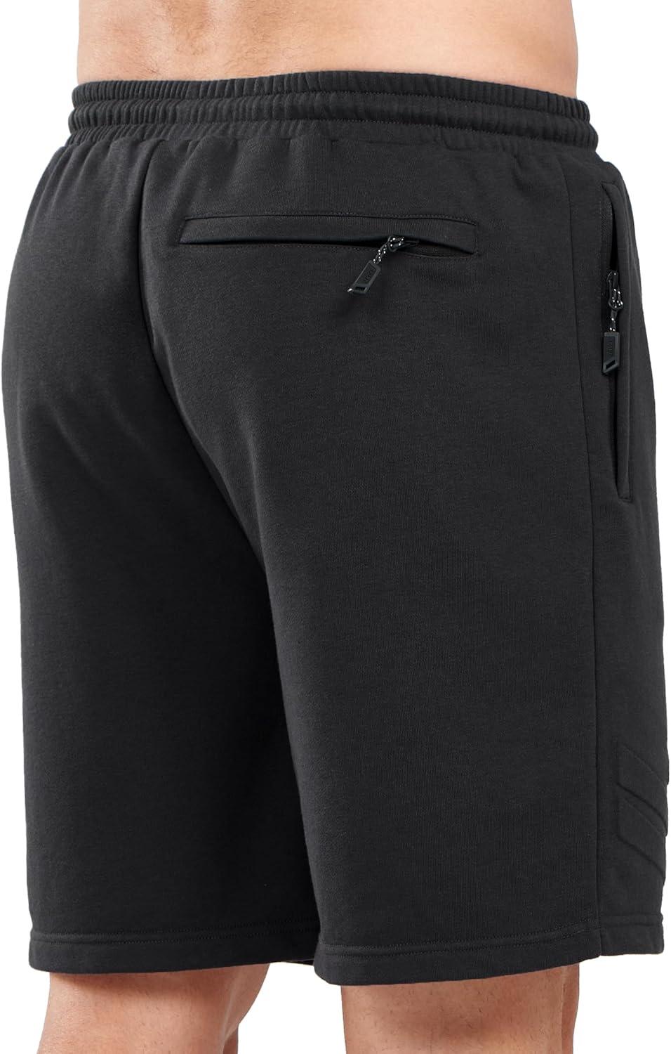 NORTHYARD Men’s Cotton Casual Sweat Shorts Athletic Running Short with Zipper Pockets 7″ Workout Gym Lounge for Mens(Black)