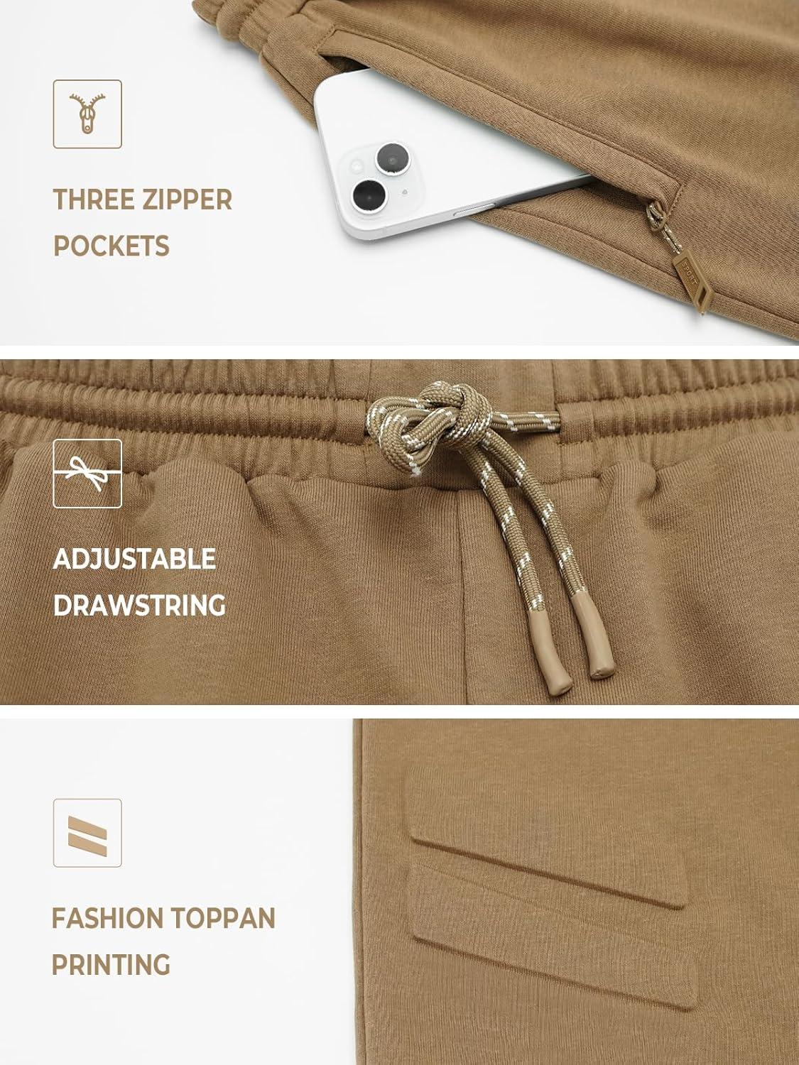 NORTHYARD Men’s Cotton Casual Sweat Shorts Athletic Running Short with Zipper Pockets 7″ Workout Gym Lounge for Mens(Coffee)