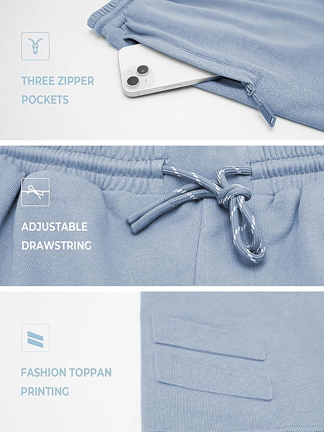 NORTHYARD Men’s Cotton Casual Sweat Shorts Athletic Running Short with Zipper Pockets 7″ Workout Gym Lounge for Mens(Greyblue)