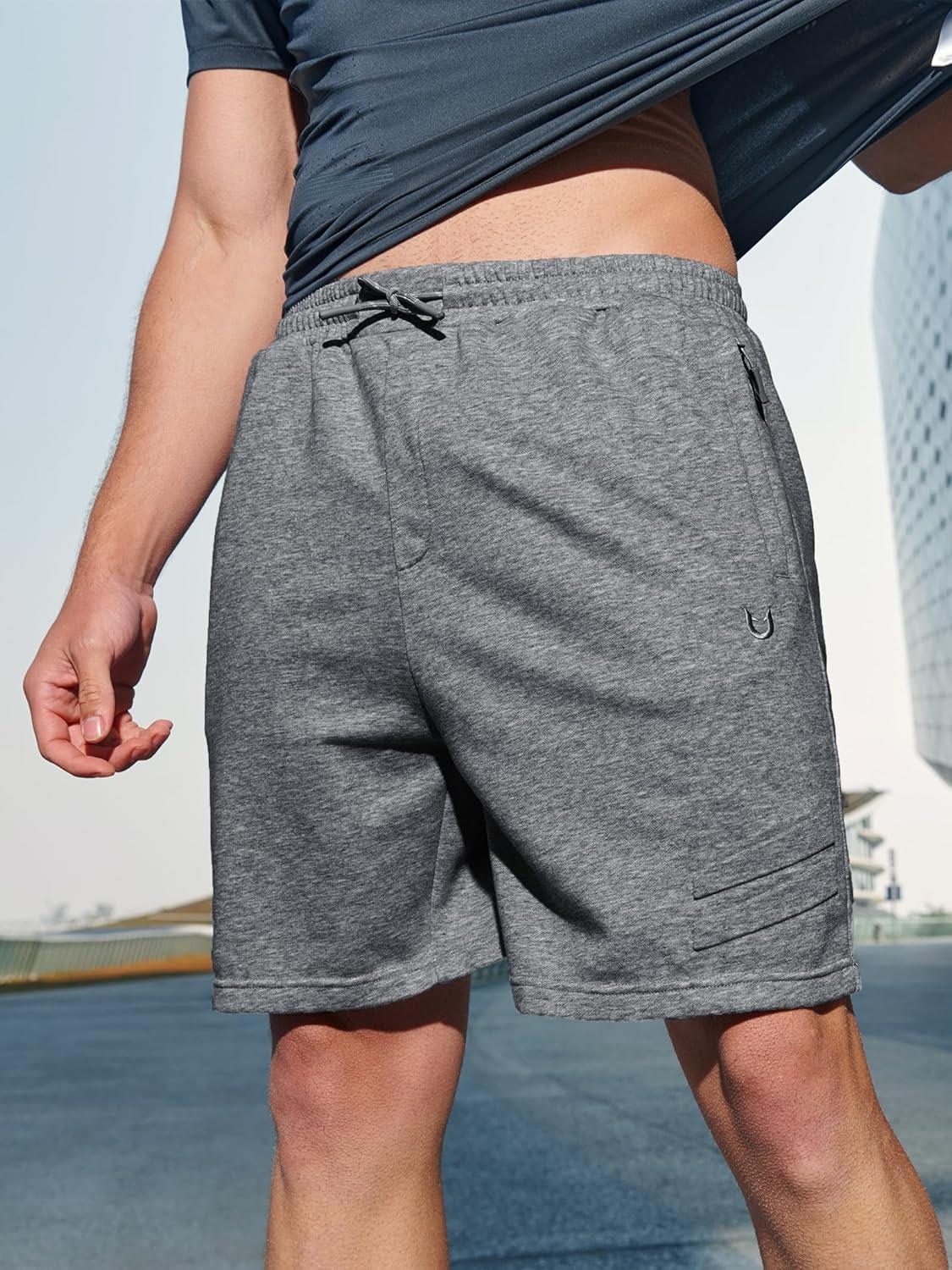 NORTHYARD Men’s Cotton Casual Sweat Shorts Athletic Running Short with Zipper Pockets 7″ Workout Gym Lounge for Mens(Smoke Heather)