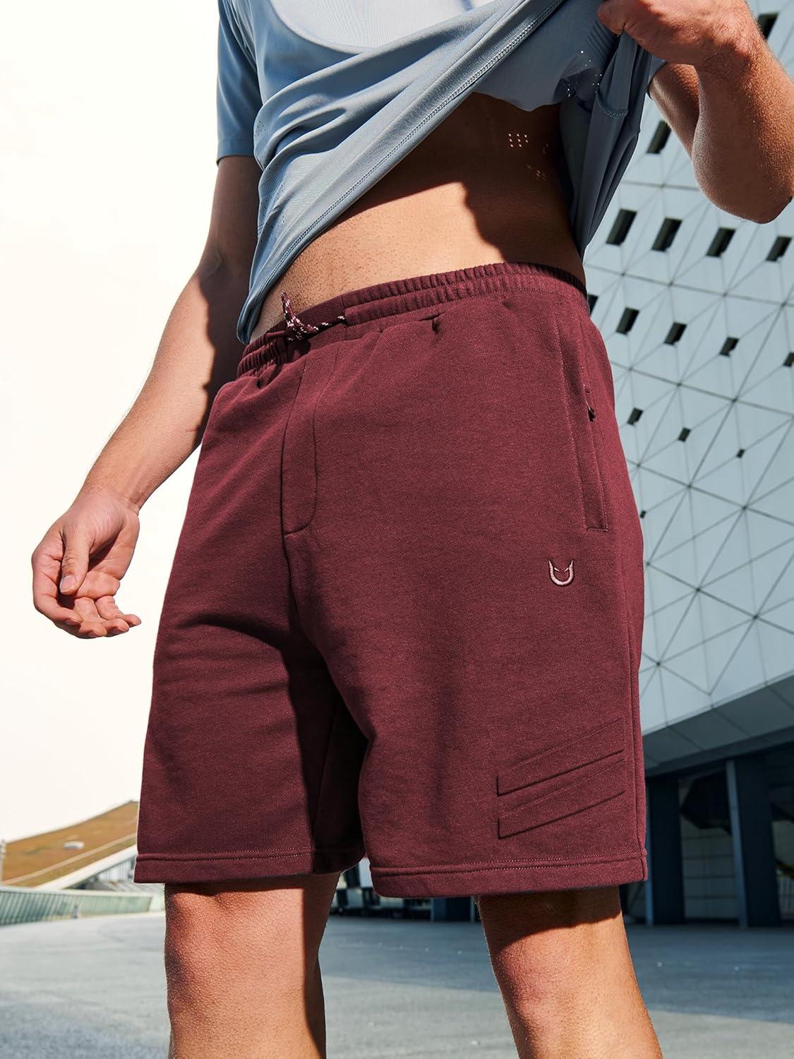 NORTHYARD Men’s Cotton Casual Sweat Shorts Athletic Running Short with Zipper Pockets 7″ Workout Gym Lounge for Mens(Wine)