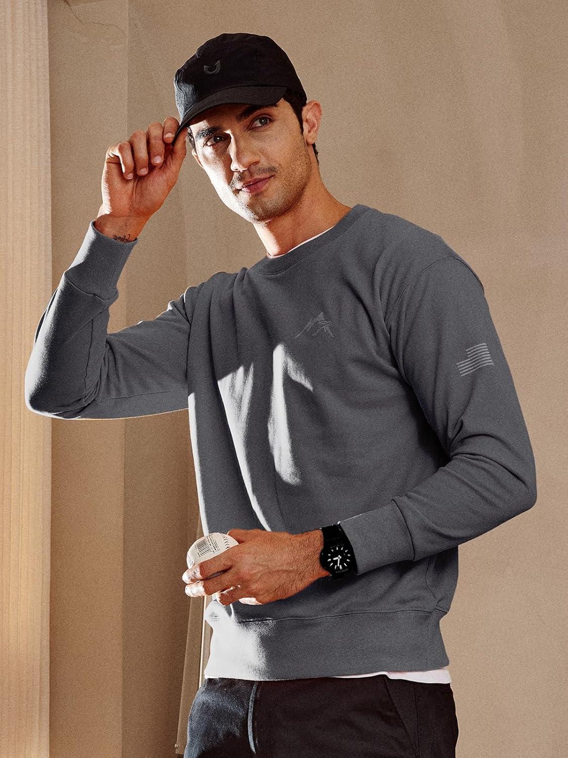 NORTHYARD Men’s Crewneck Sweatshirt Long Sleeve Cotton Shirts Athletic Casual Workout Sport Gym Running Sweatshirts(Darkgrey)