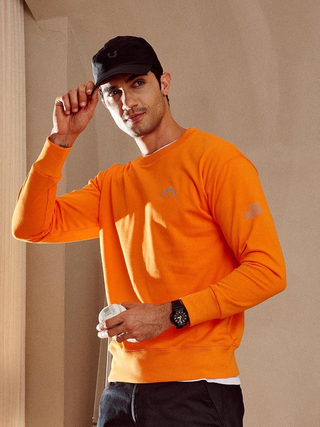 NORTHYARD Men’s Crewneck Sweatshirt Long Sleeve Cotton Shirts Athletic Casual Workout Sport Gym Running Sweatshirts(Orange)