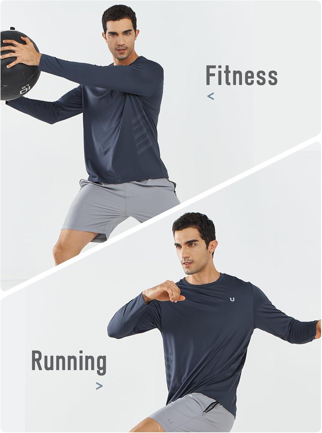NORTHYARD Men’s Running Athletic Shirts Long Sleeve Quick Dry Workout Gym Shirt Lightweight UPF 50+ Fishing Hiking Rash Guard(Blueheather)