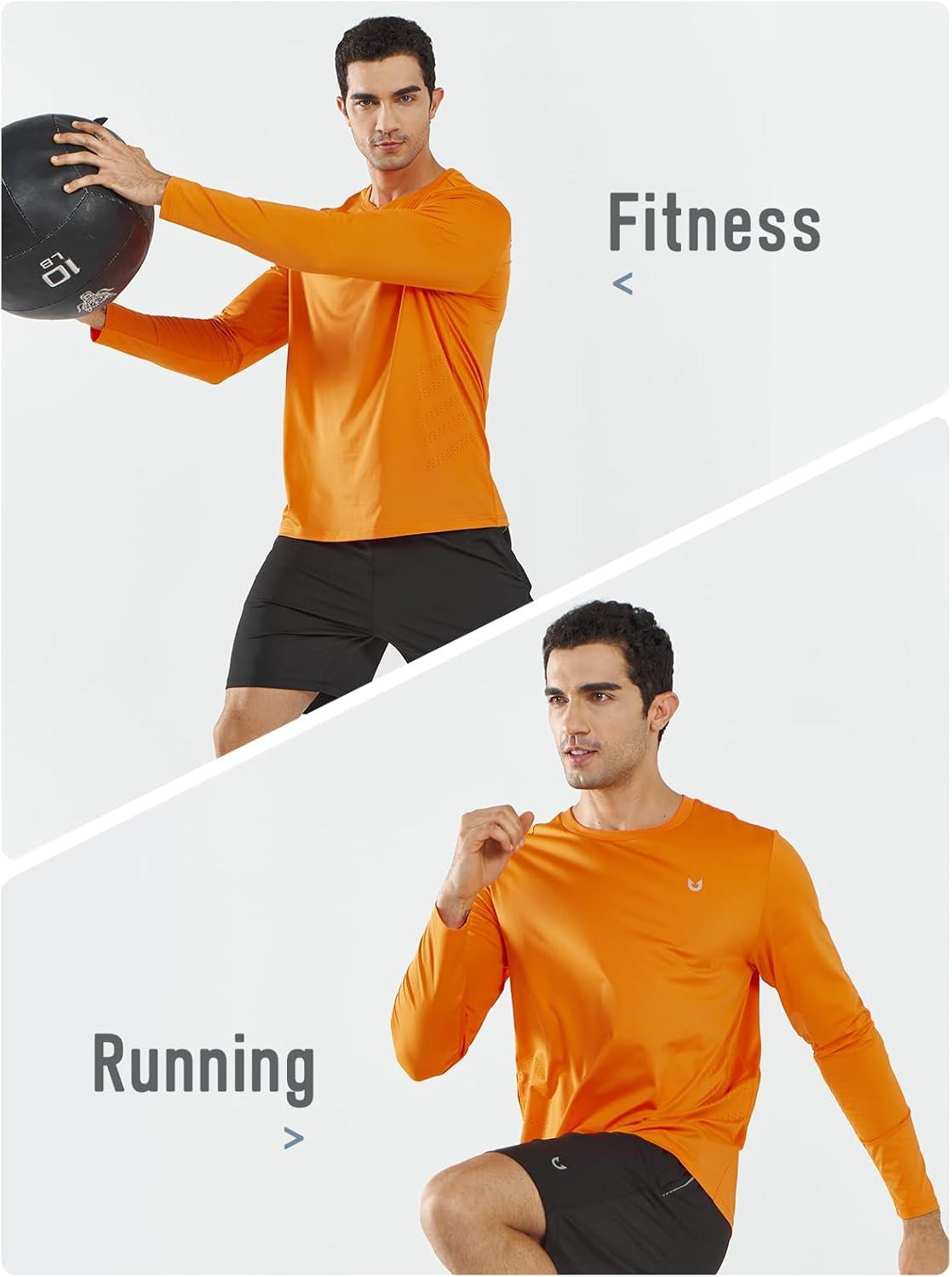 NORTHYARD Men’s Running Athletic Shirts Long Sleeve Quick Dry Workout Gym Shirt Lightweight UPF 50+ Fishing Hiking Rash Guard(Orange)