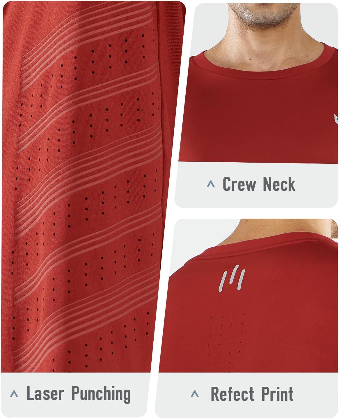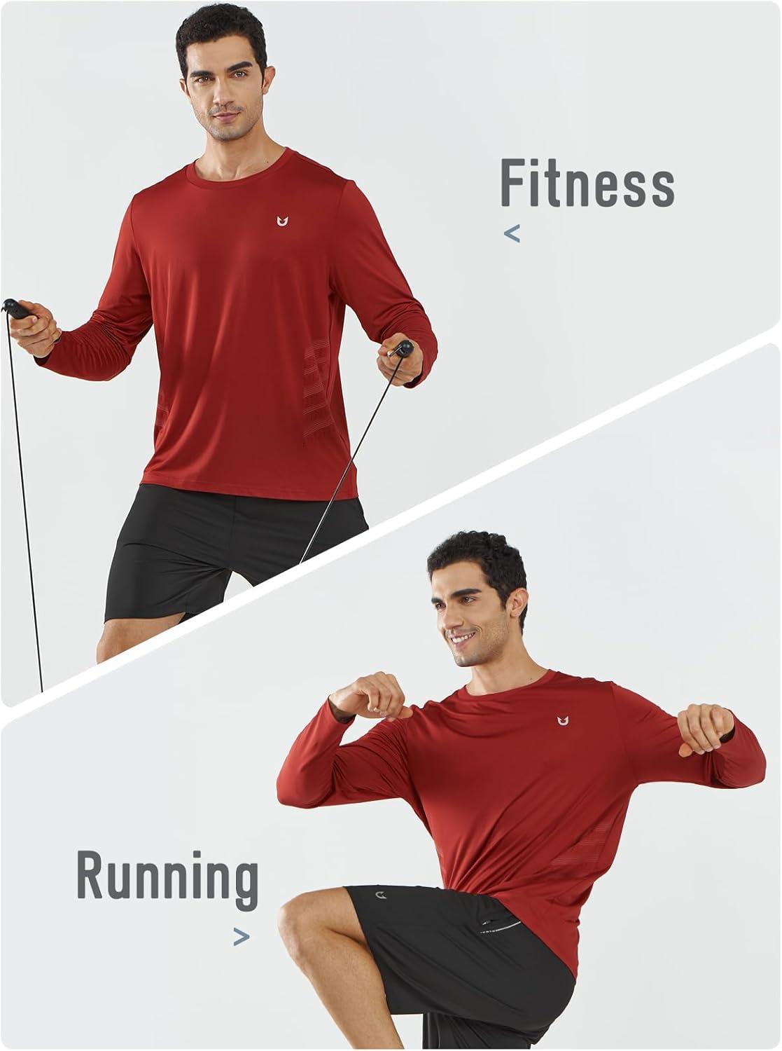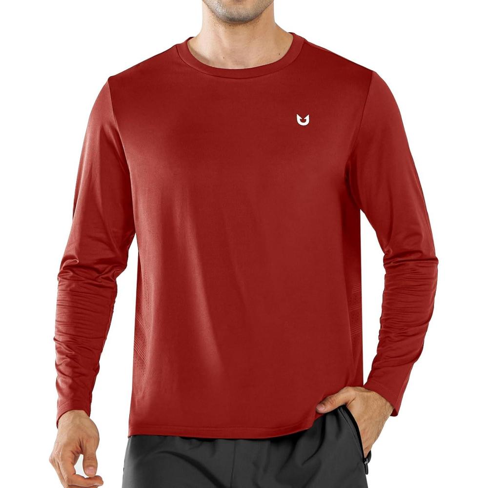 NORTHYARD Men’s Running Athletic Shirts Long Sleeve Quick Dry Workout Gym Shirt Lightweight UPF 50+ Fishing Hiking Rash Guard(Redochre)