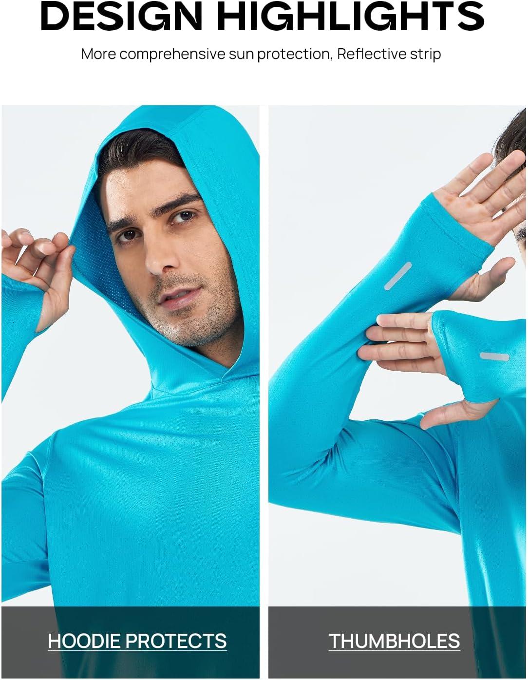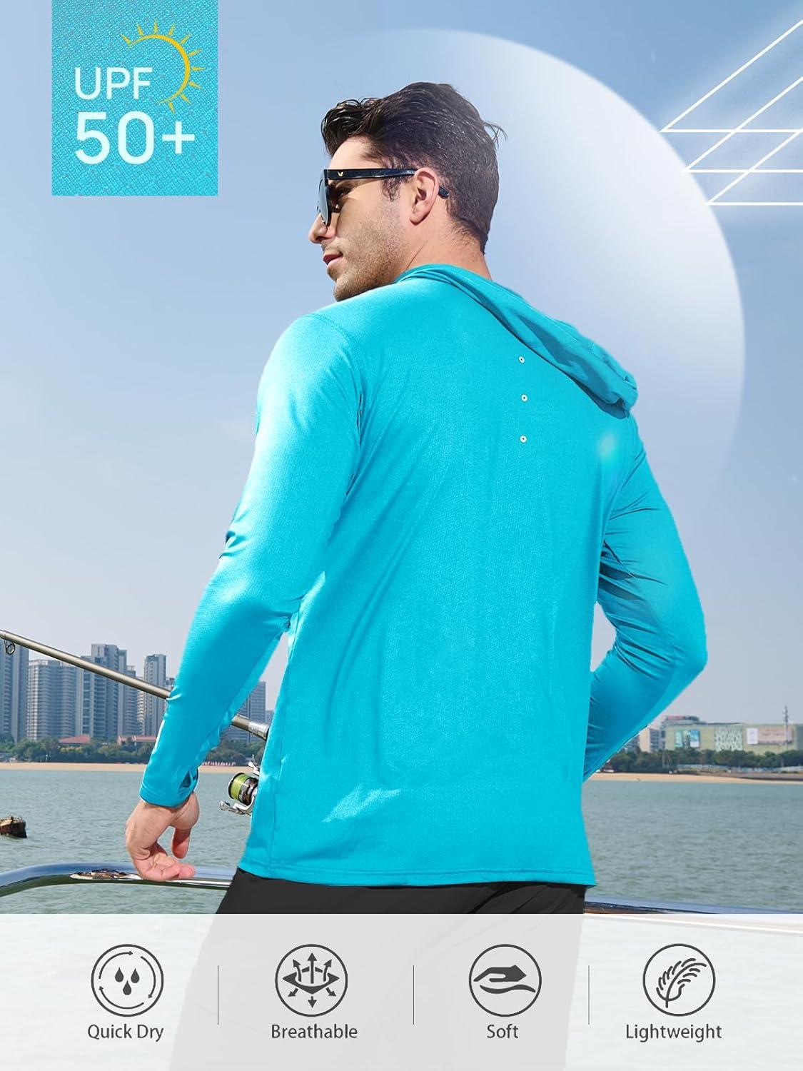NORTHYARD Men’s Sun Hoodie Shirts Long Sleeve Fishing Swim SPF Shirt Rash Guard UPF 50+ Lightweight for Hiking Workout(Lakeblue)