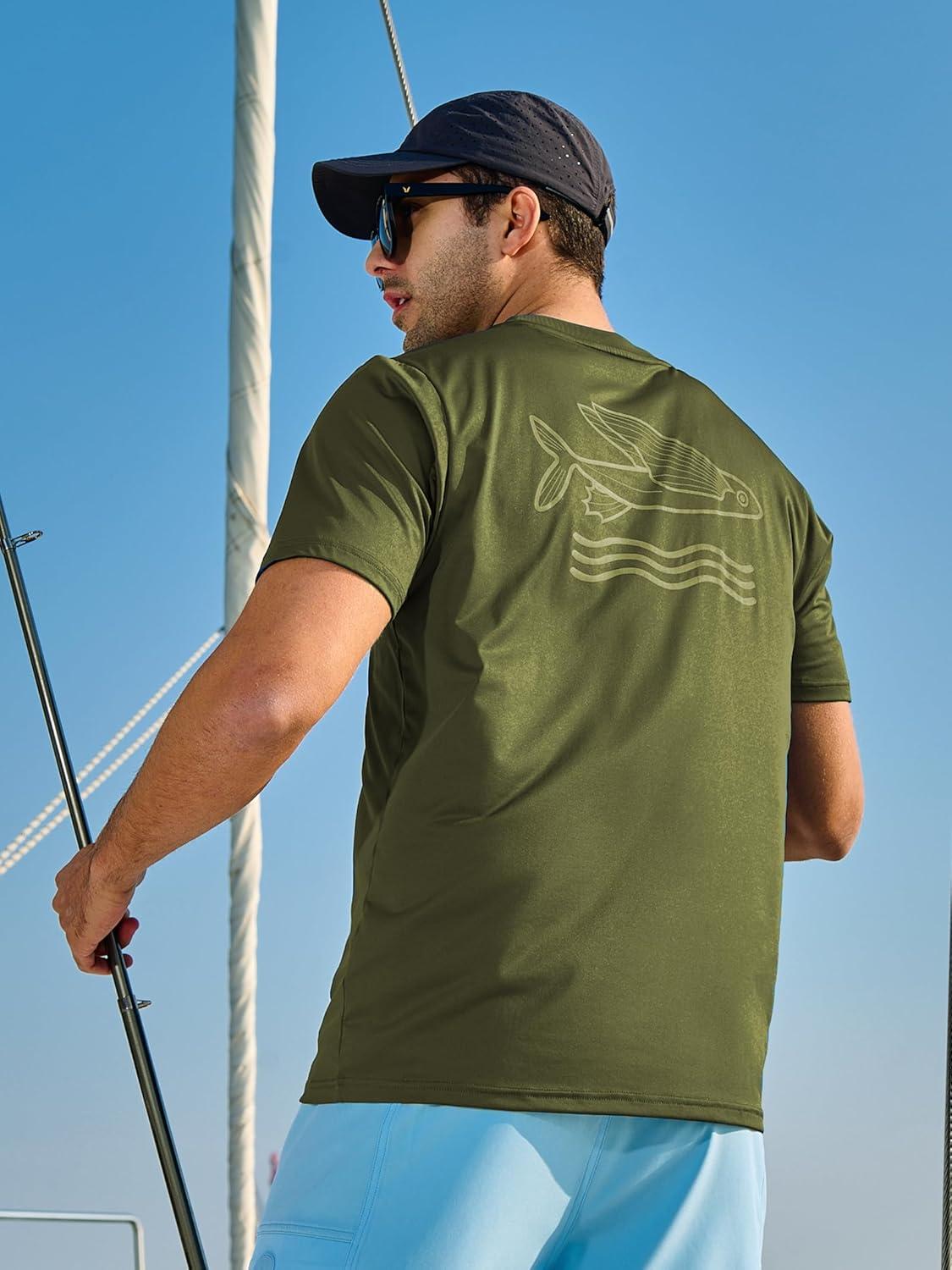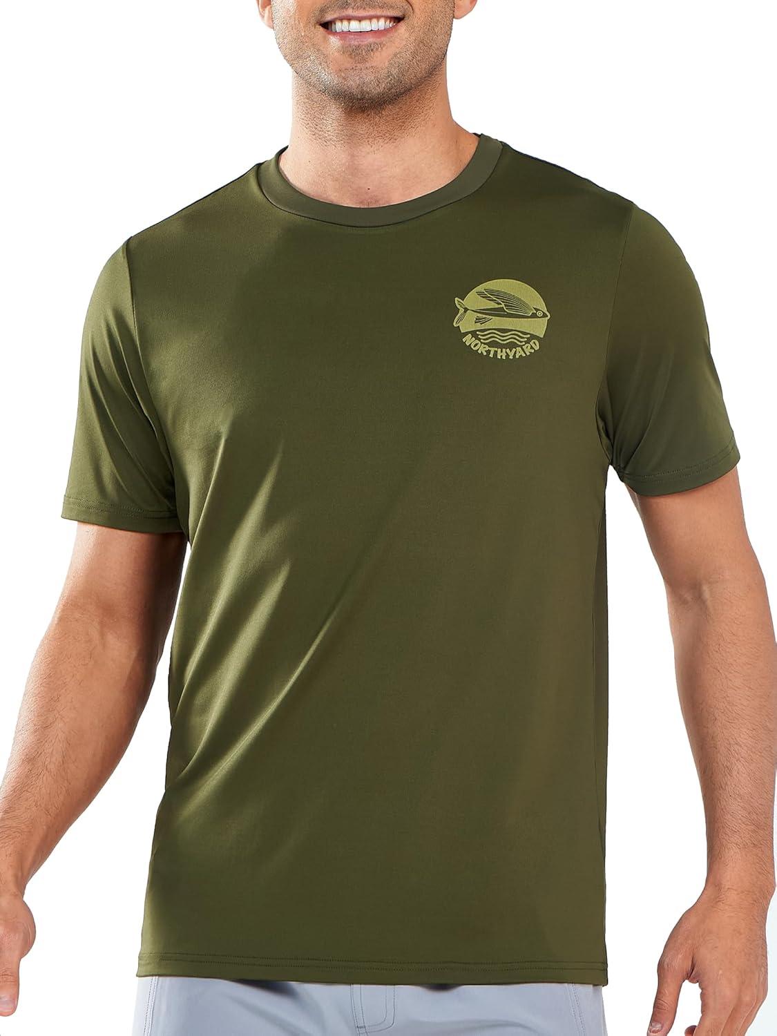 NORTHYARD Mens Swim Shirt Rash Guard UPF 50+ Quick Dry Short Sleeve Fishing Shirts Sun Protection Shirt Beach Water Swimming(Armygreen)