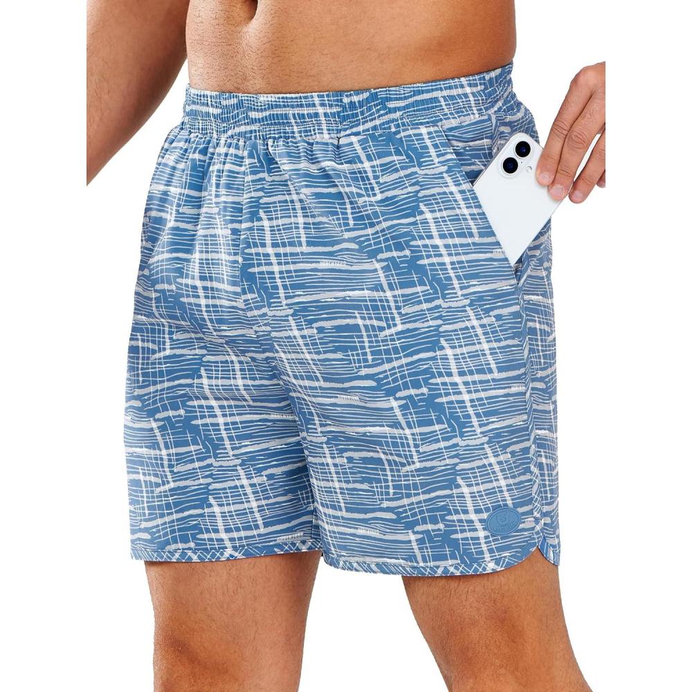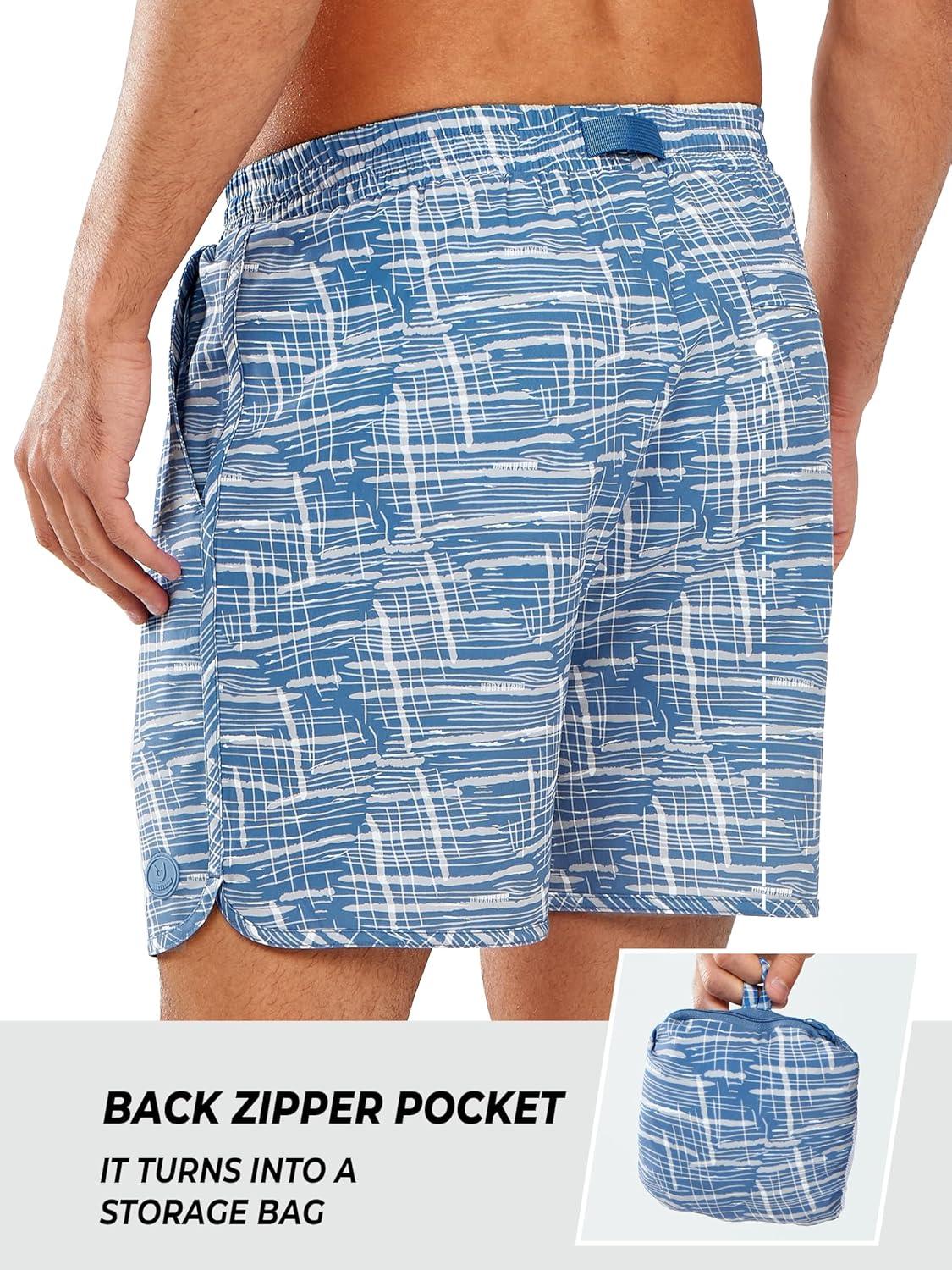 NORTHYARD Mens Swim Trunks 5″ Beach Swim Shorts Quick Dry Bathing Suit with Mesh Liner Packable(Blue White Lines)