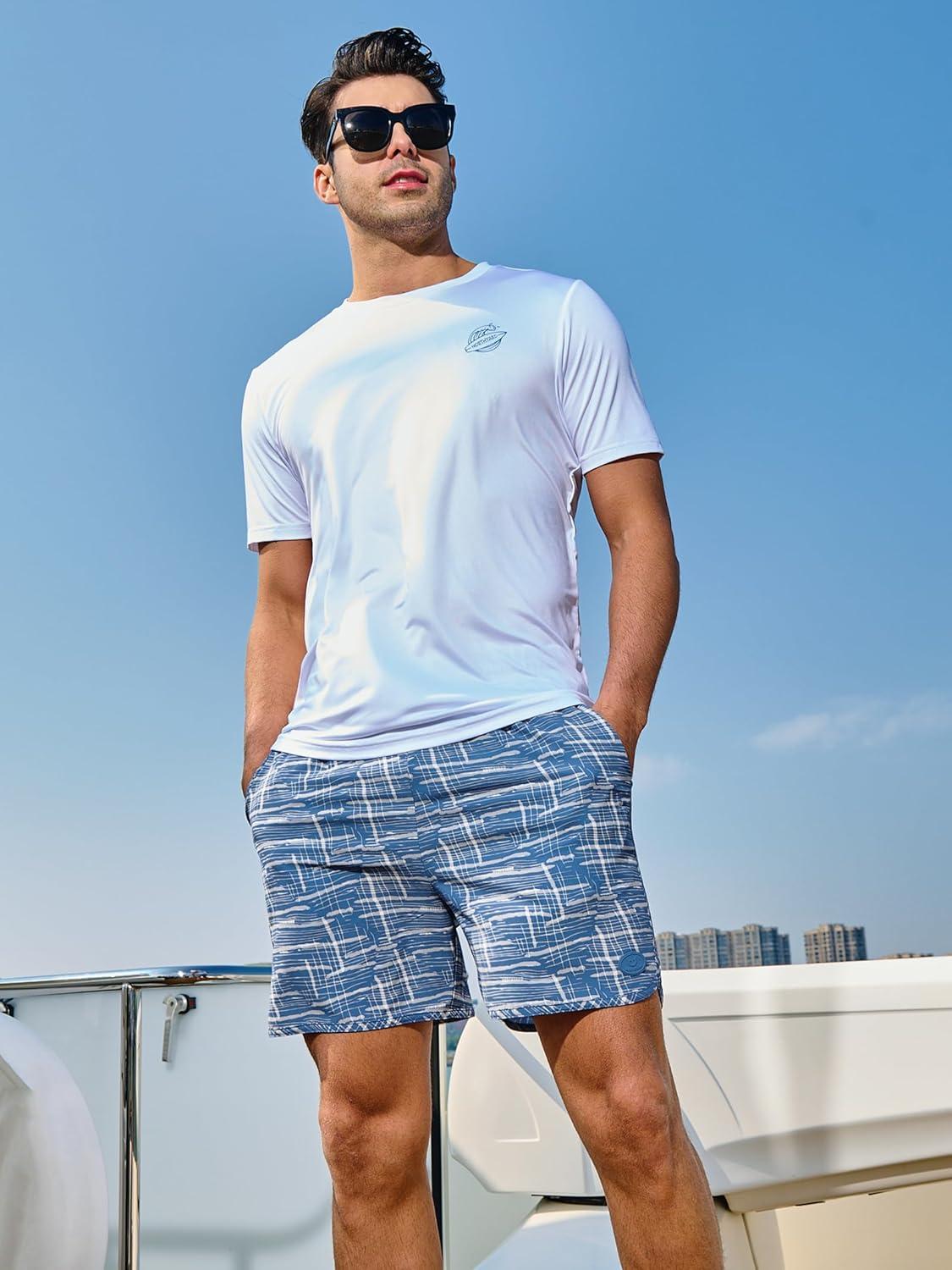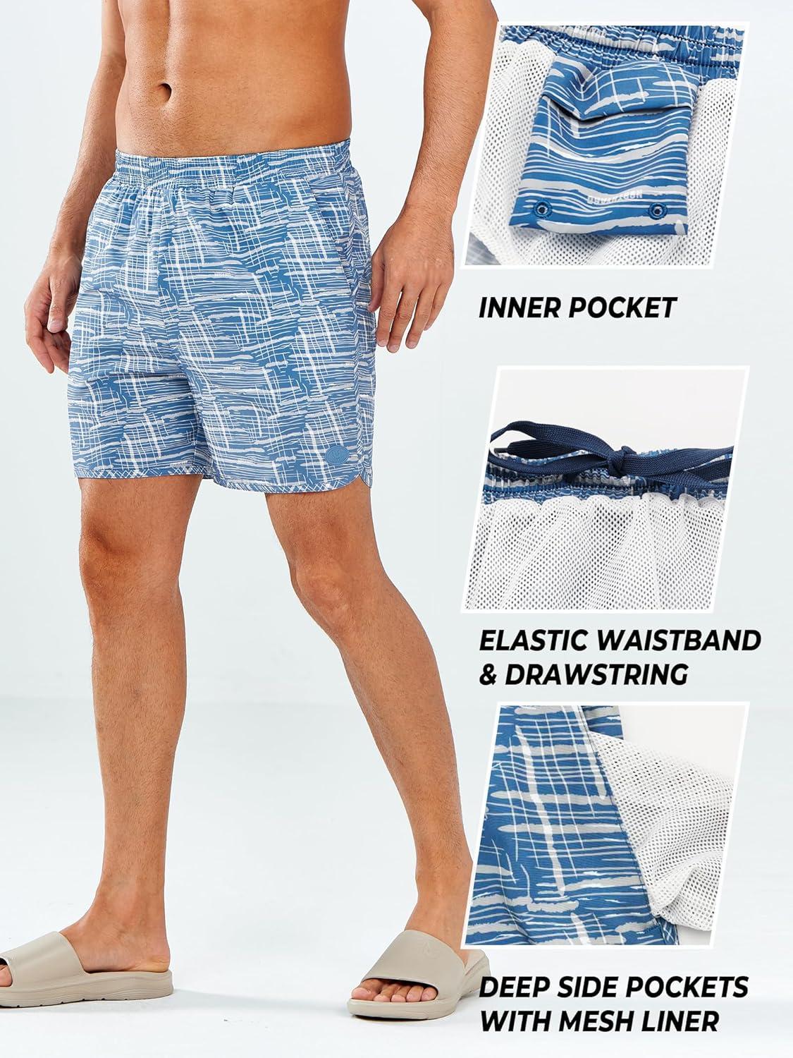 NORTHYARD Mens Swim Trunks 5″ Beach Swim Shorts Quick Dry Bathing Suit with Mesh Liner Packable(Blue Surfboard)