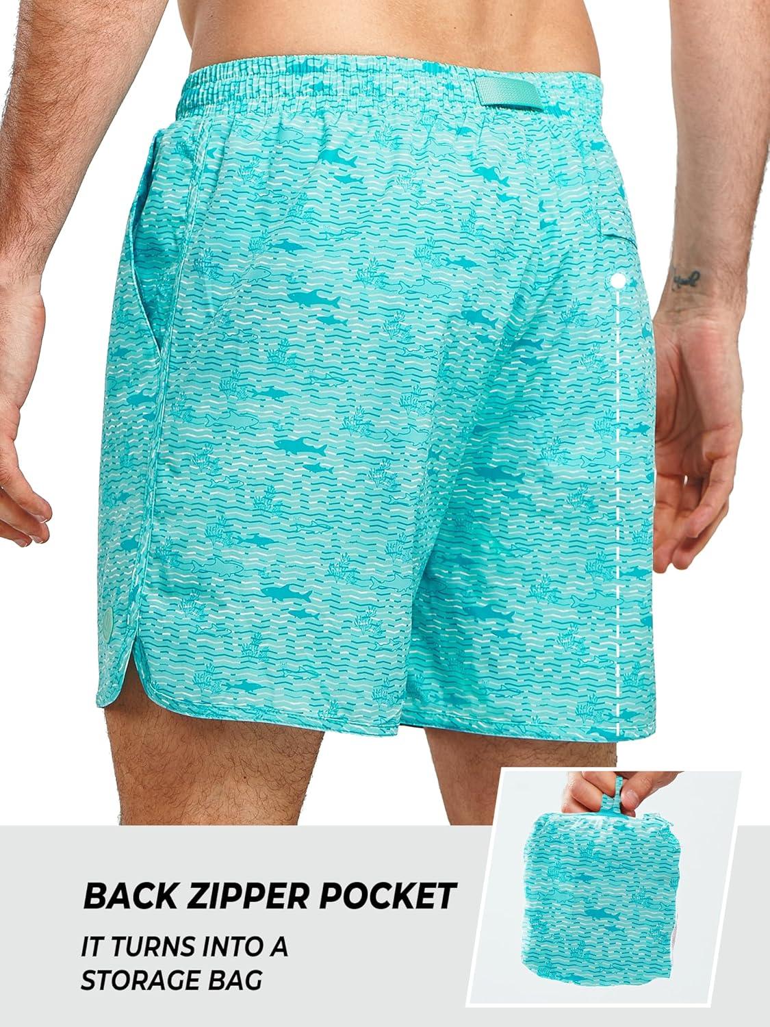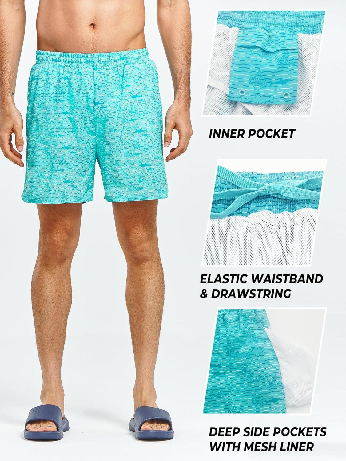 NORTHYARD Mens Swim Trunks 5″ Beach Swim Shorts Quick Dry Bathing Suit with Mesh Liner Packable(Fish Shark)