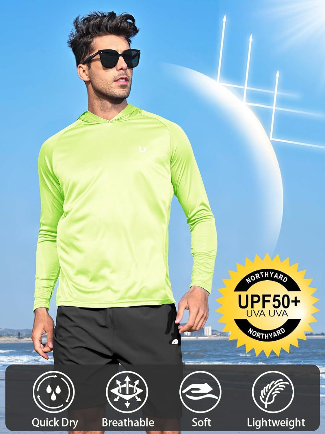 NORTHYARD Men’s UPF 50+ Hoodie Shirts Long Sleeve Sun Protection Fishing Swim Beach UV SPF Rash Guard Quick Dry Lightweight(Lightmint)