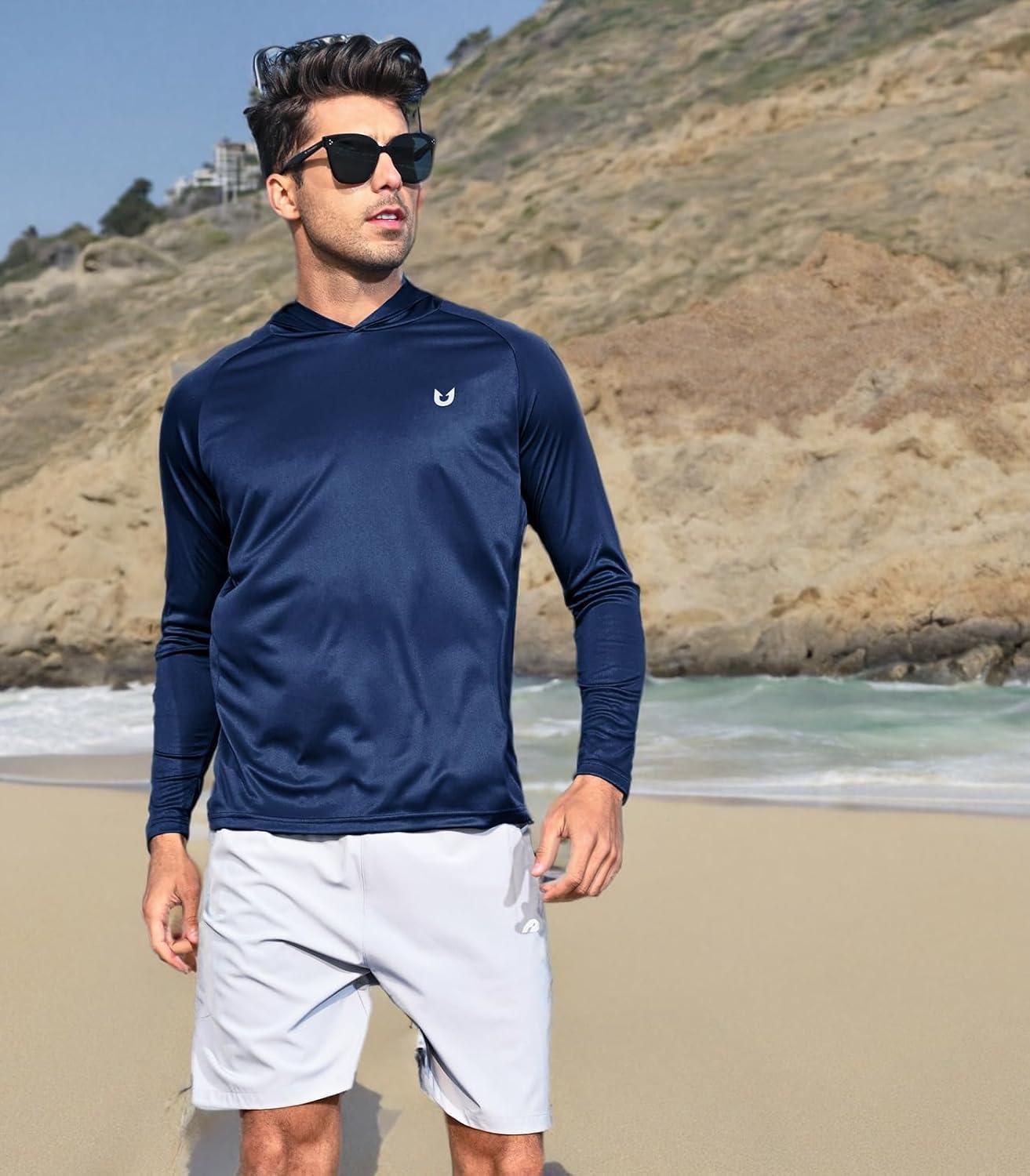 NORTHYARD Men’s UPF 50+ Hoodie Shirts Long Sleeve Sun Protection Fishing Swim Beach UV SPF Rash Guard Quick Dry Lightweight(Navy)
