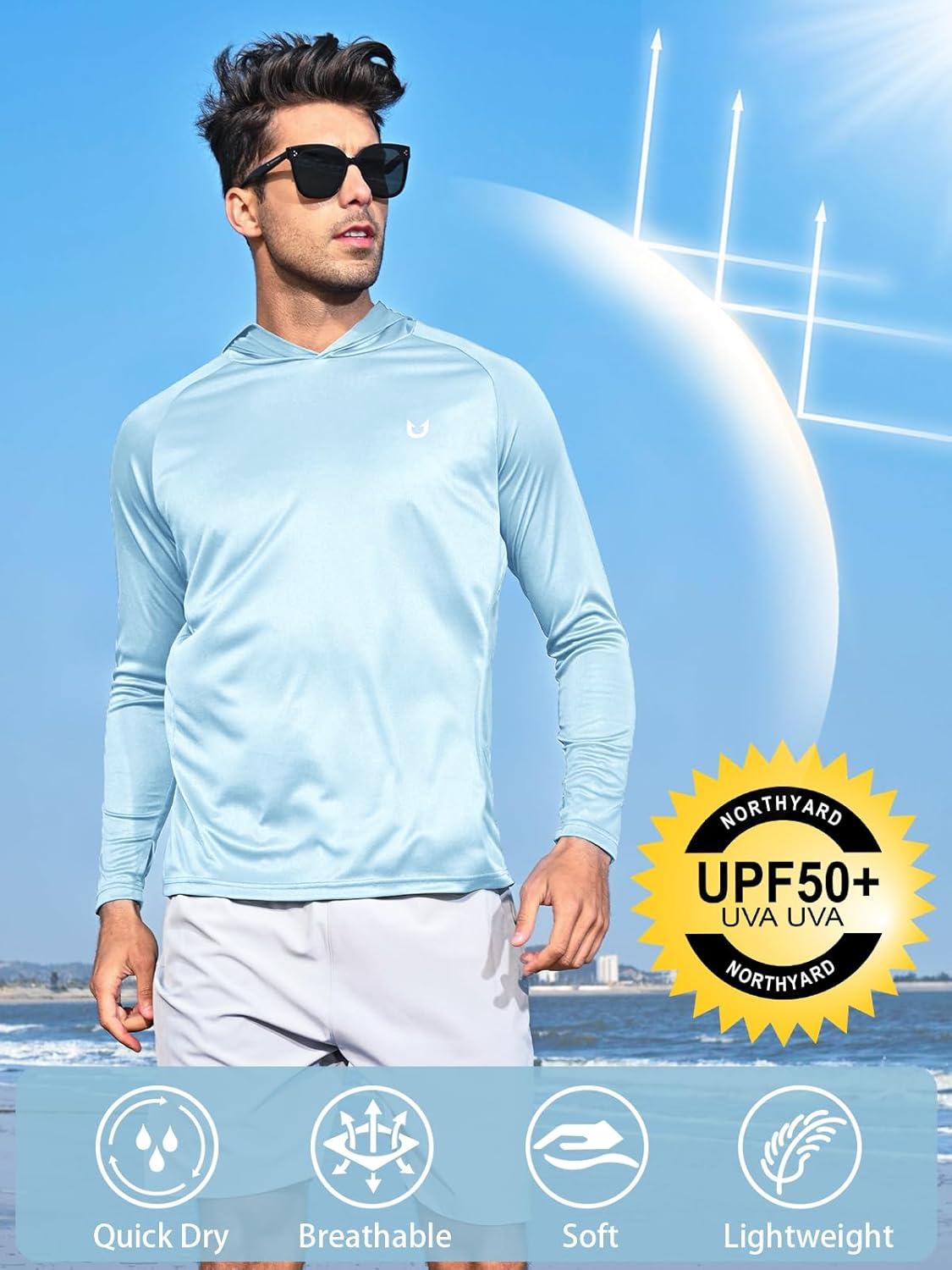 NORTHYARD Men’s UPF 50+ Hoodie Shirts Long Sleeve Sun Protection Fishing Swim Beach UV SPF Rash Guard Quick Dry Lightweight(Skyblue)