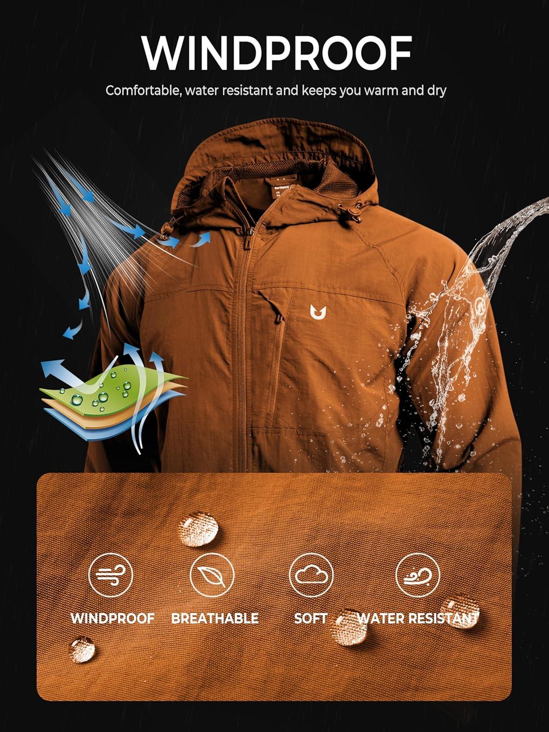 Don’t wait, get up to 50% off on NORTHYARD Men’s Windbreaker Jacket Lightweight Hooded Windproof Jackets with Zipper Pockets Hiking Outdoor Water Resistant(Brown) during our end-of-season sale event.