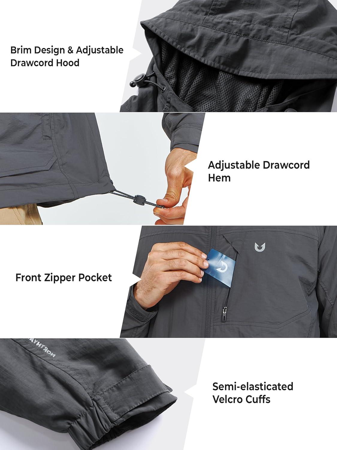 NORTHYARD Men’s Windbreaker Jacket Lightweight Hooded Windproof Jackets with Zipper Pockets Hiking Outdoor Water Resistant(Darkgrey)