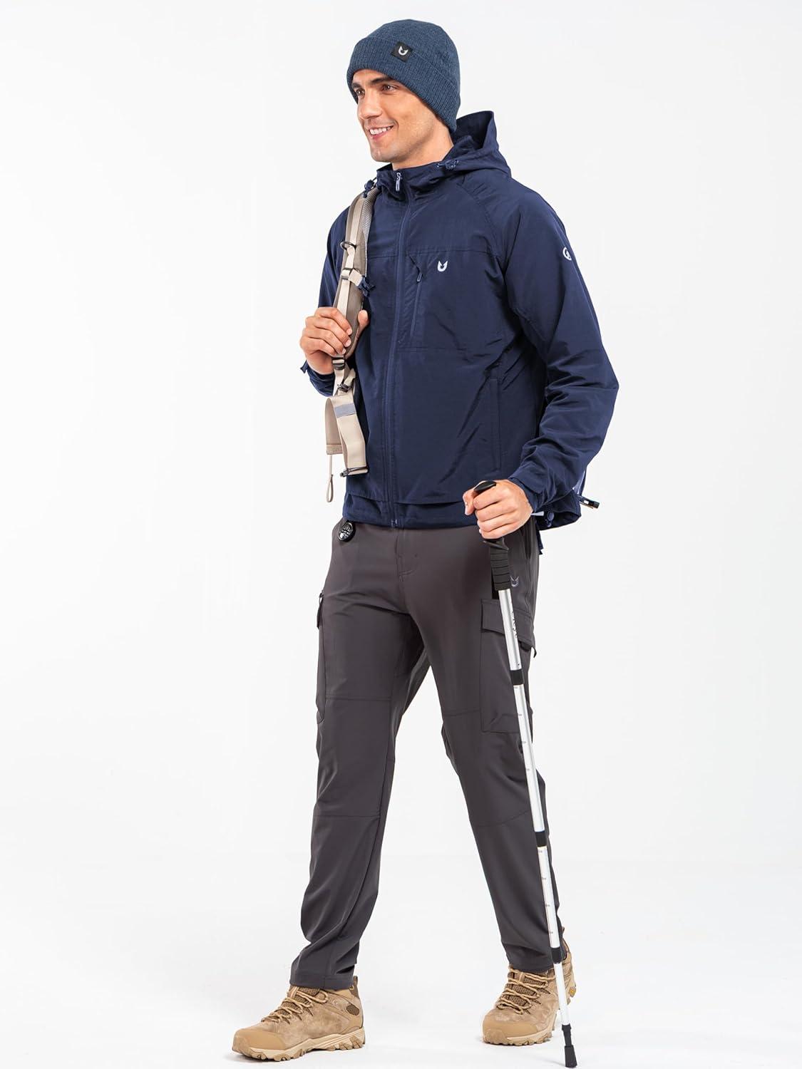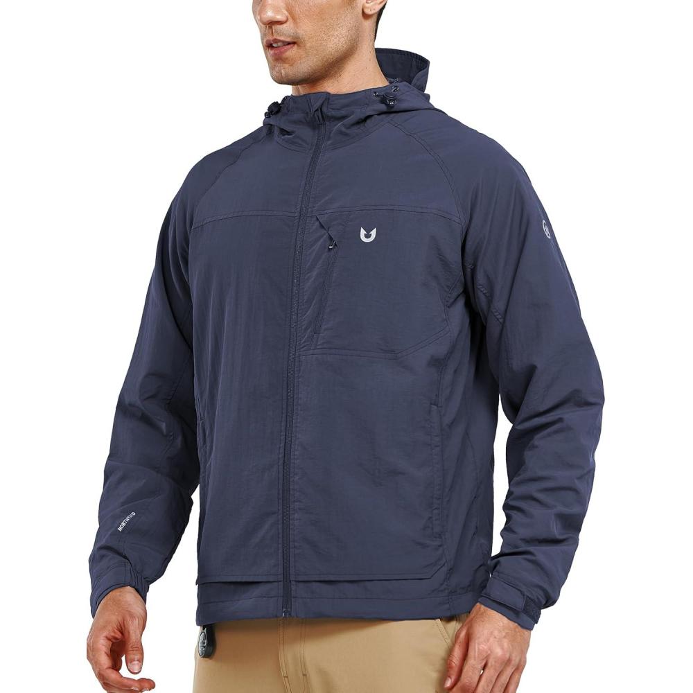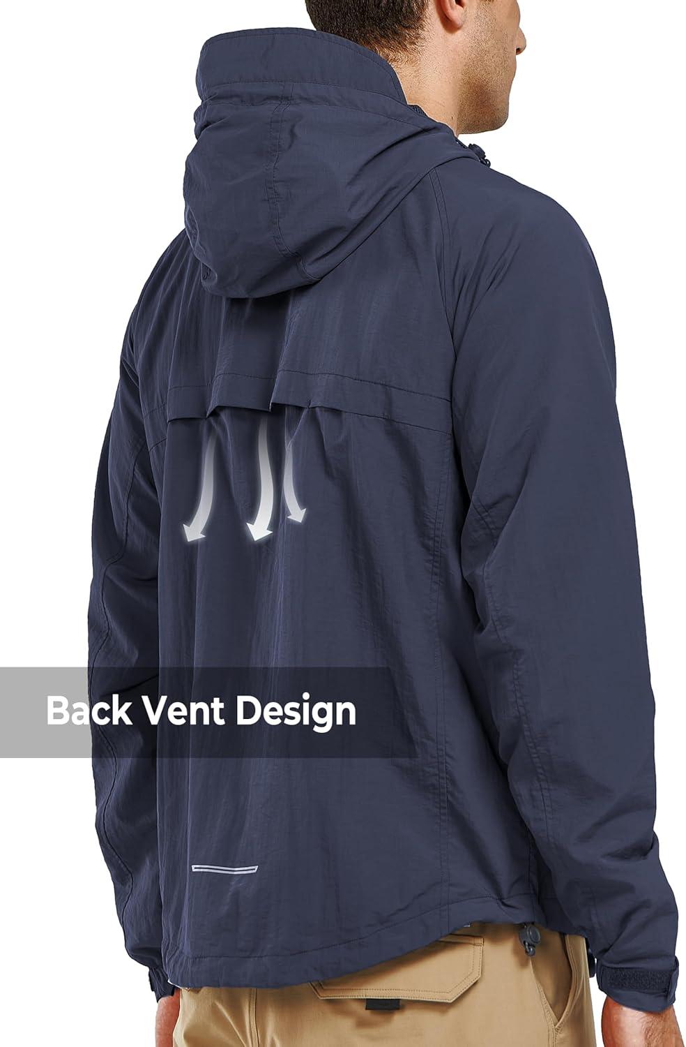 NORTHYARD Men’s Windbreaker Jacket Lightweight Hooded Windproof Jackets with Zipper Pockets Hiking Outdoor Water Resistant(Navy)