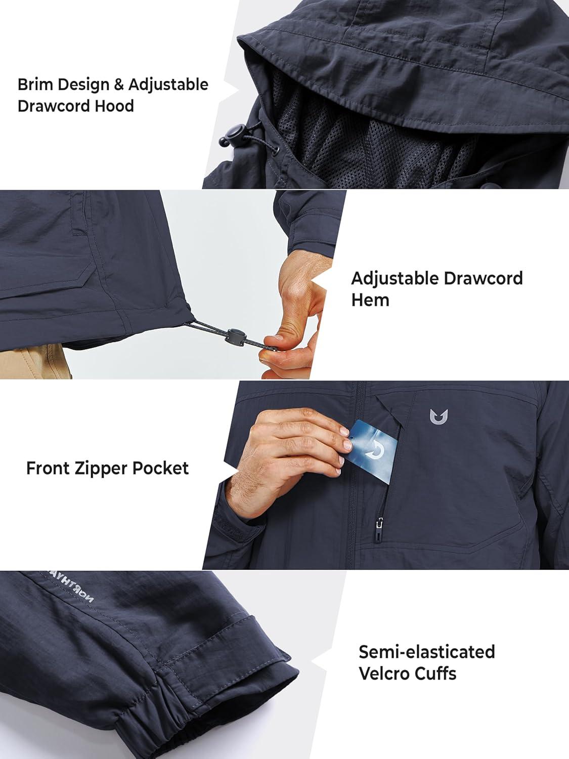 NORTHYARD Men’s Windbreaker Jacket Lightweight Hooded Windproof Jackets with Zipper Pockets Hiking Outdoor Water Resistant(Lightgrey)