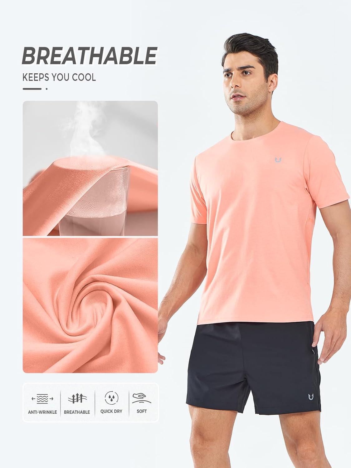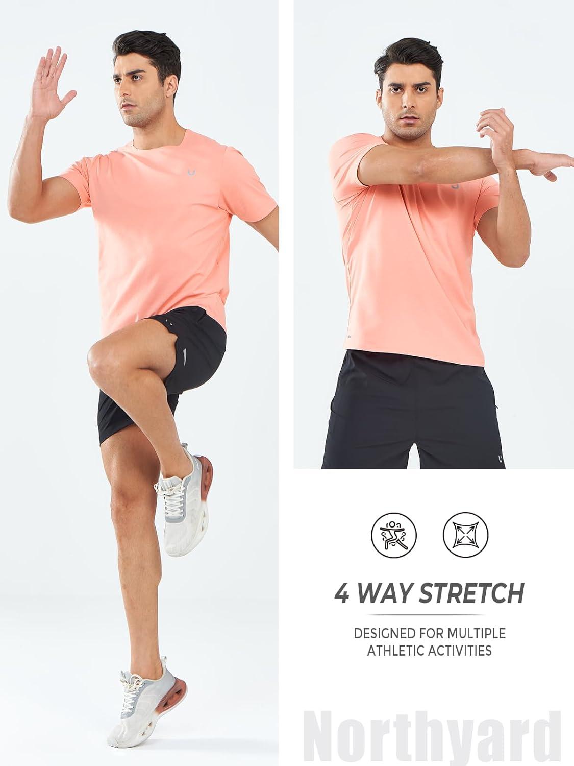 NORTHYARD Men’s Workout Gym Shirts Quick Dry T-Shirts Running Athletic Short Sleeve Shirt for Men(Pink)