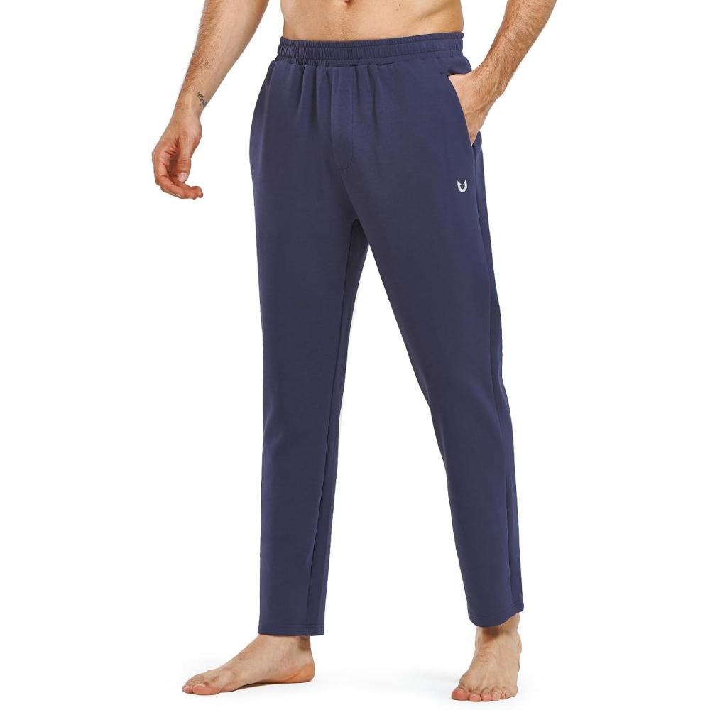 NORTHYARD Men’s Yoga Casual Sweatpants Cotton Athletic Lounge Pants Open Bottom Loose Exercise Straight Leg Pant with Pockets(Navy)