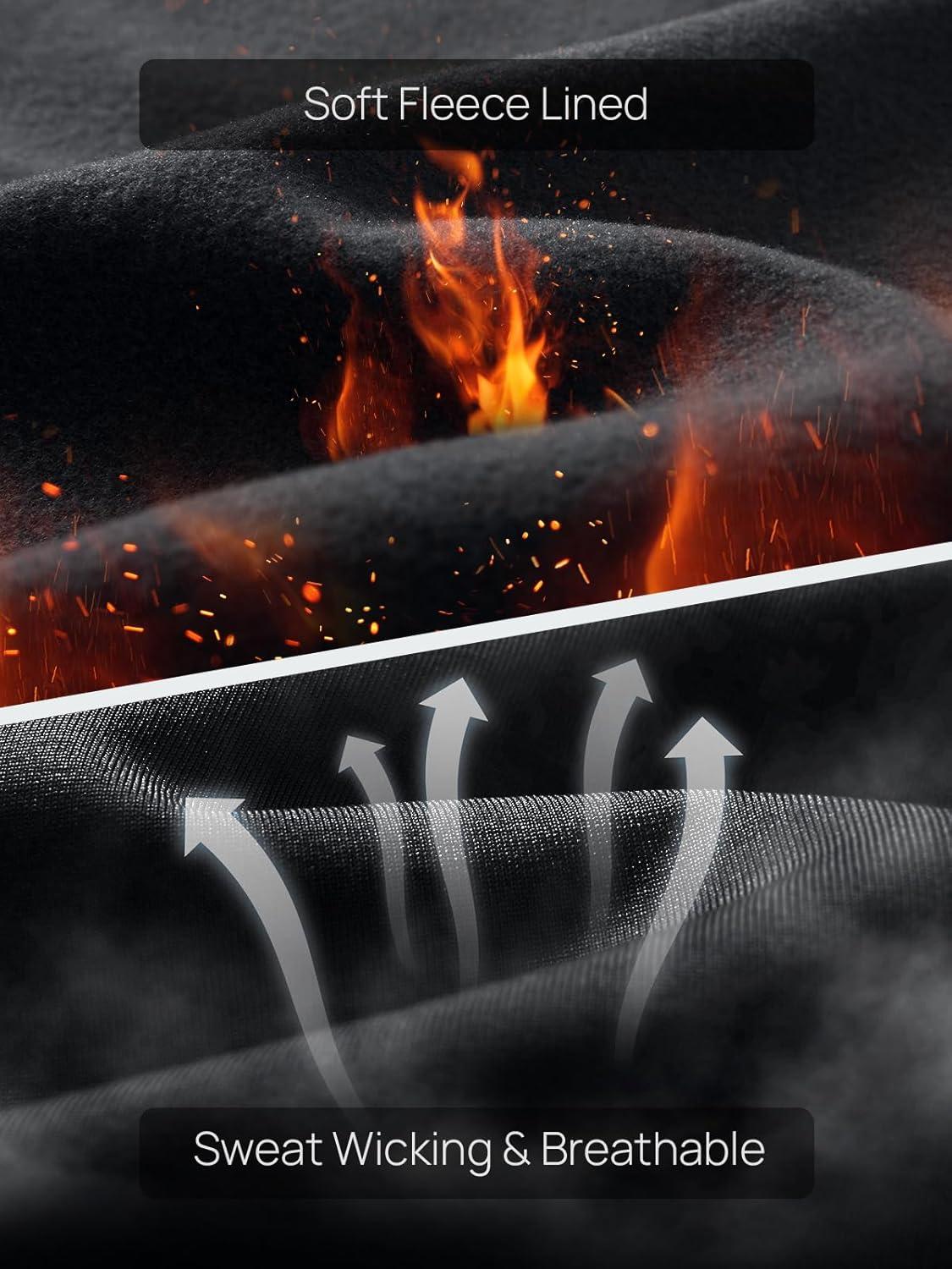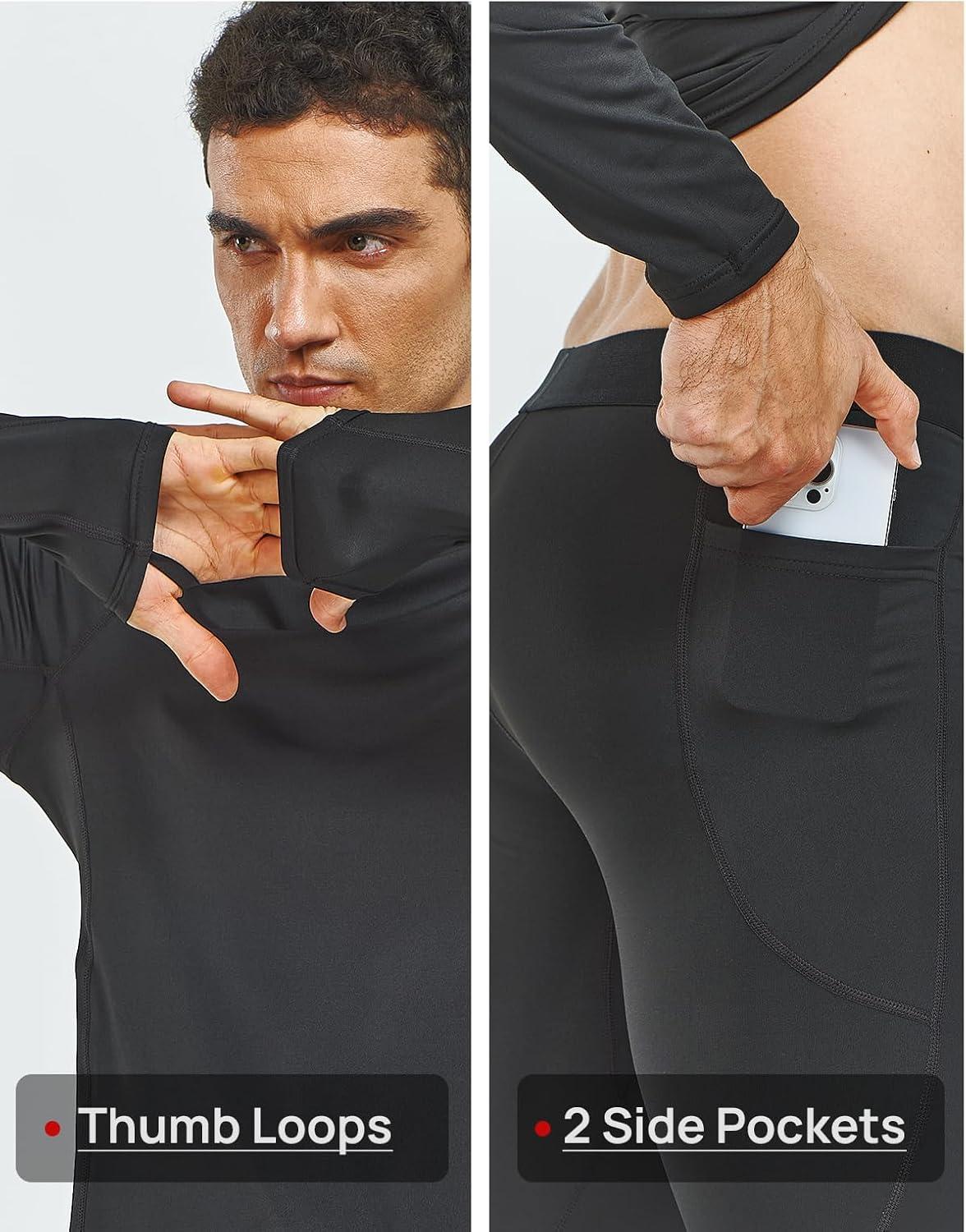 NORTHYARD Thermal Underwear for Men Long Johns Fleece Lined Base Layer Set for Winter Top Bottom with Pockets(Black)