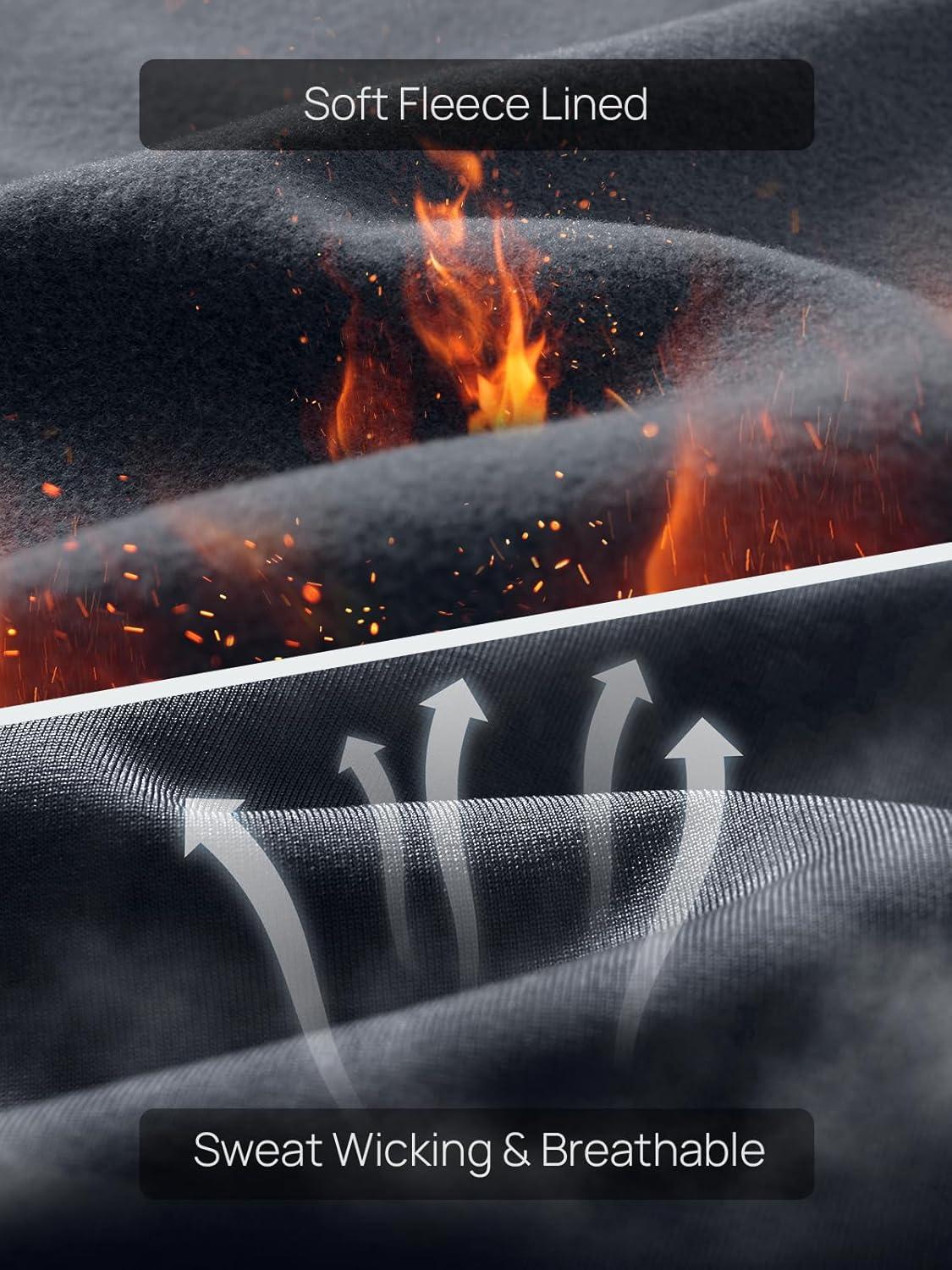 imageNORTHYARD Thermal Underwear for Men Long Johns Fleece Lined Base Layer Set for Winter Top Bottom with PocketsBlack