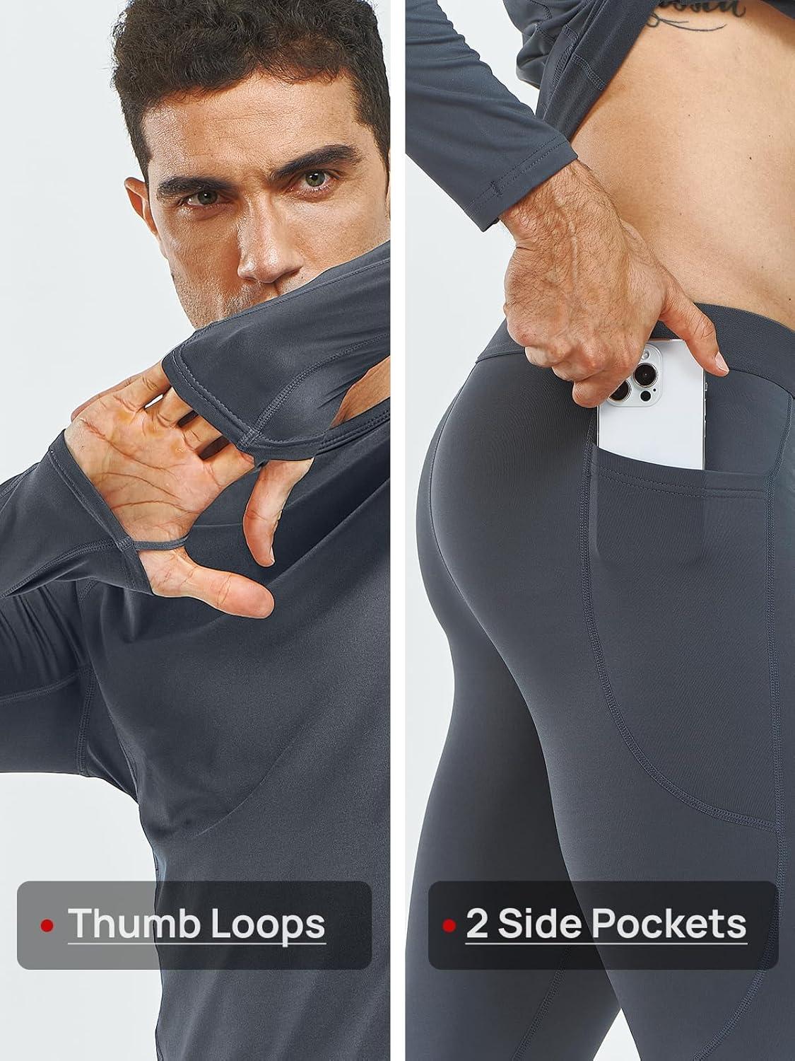 NORTHYARD Thermal Underwear for Men Long Johns Fleece Lined Base Layer Set for Winter Top Bottom with Pockets(Cool Grey)