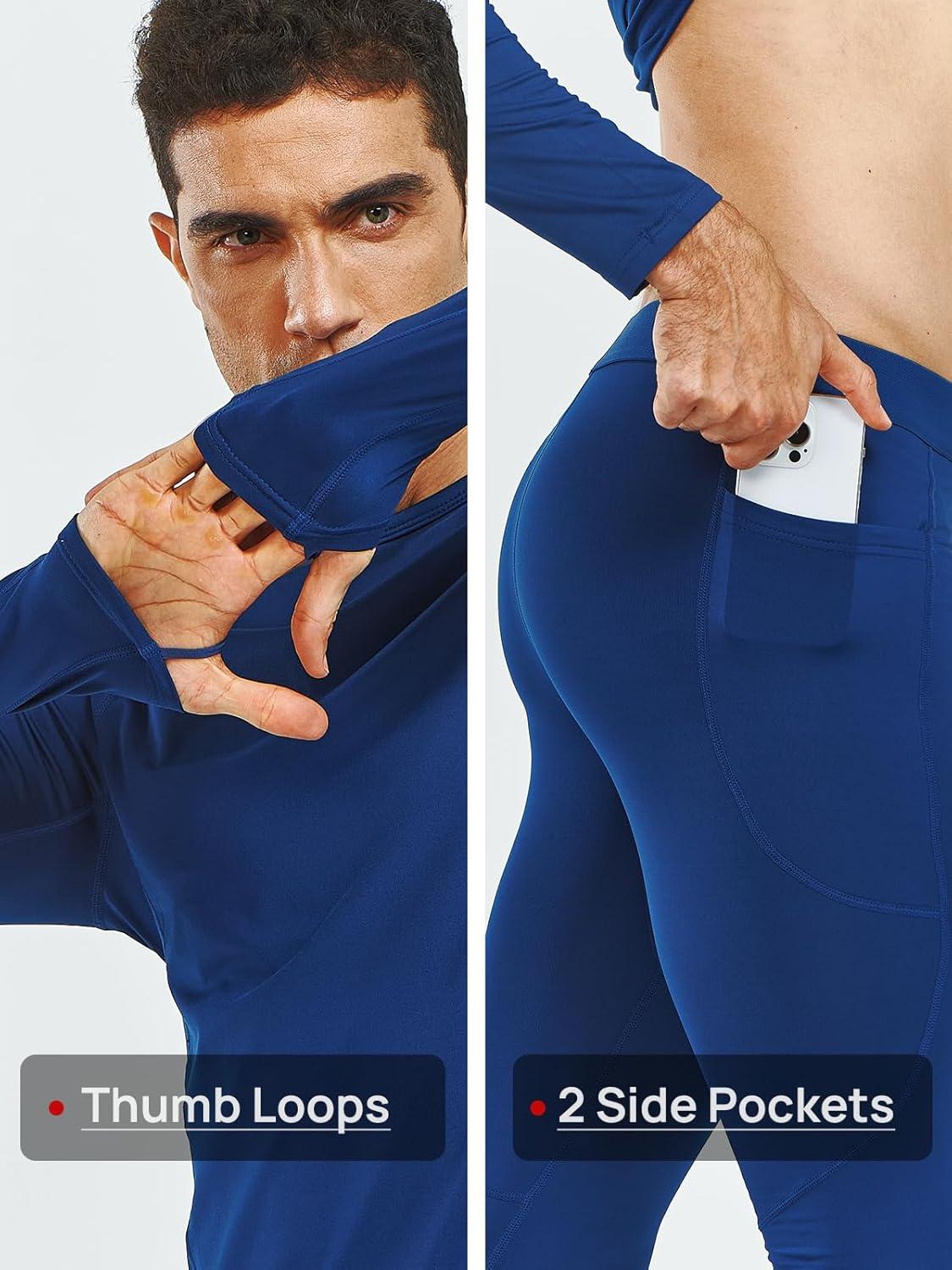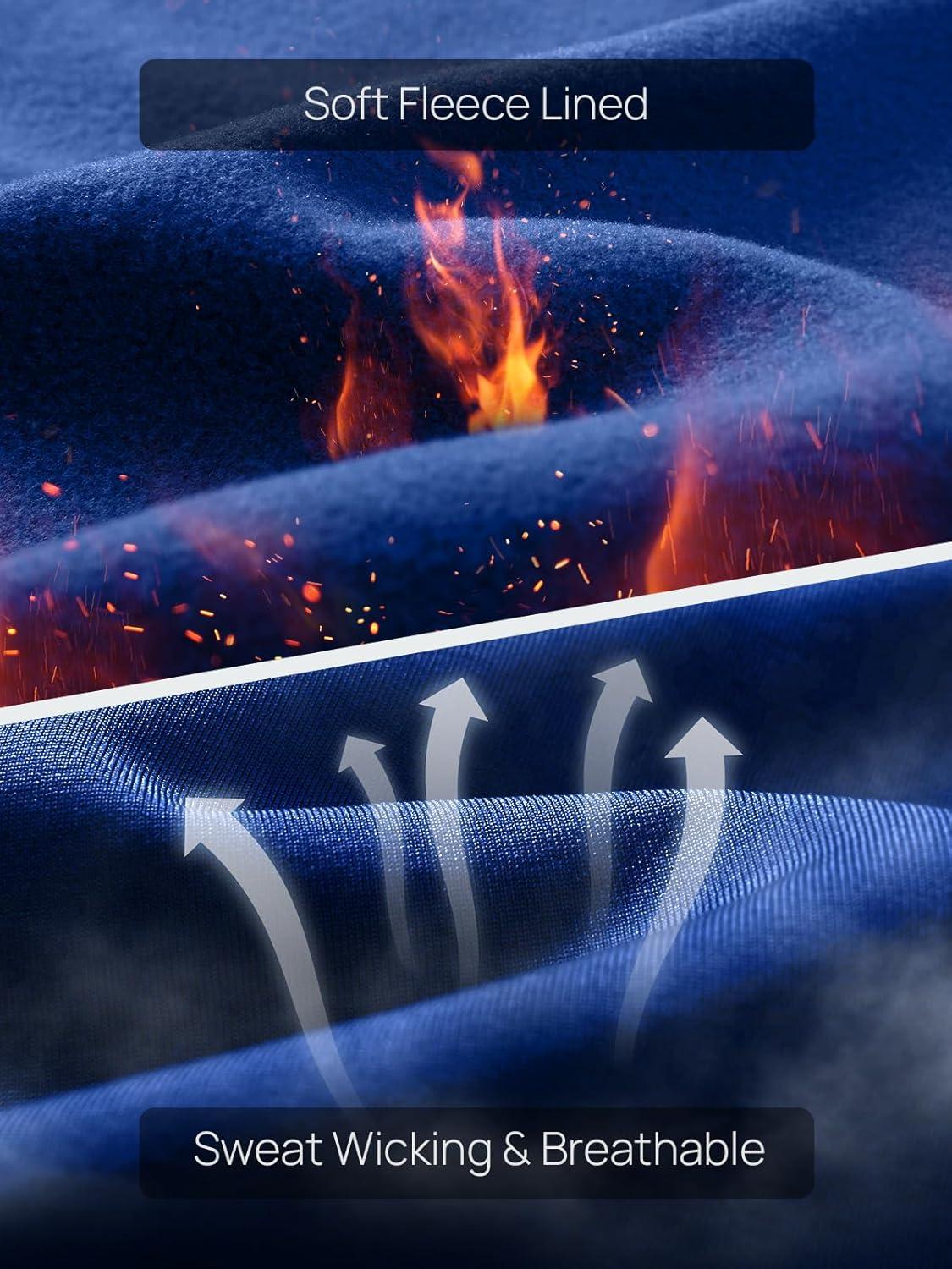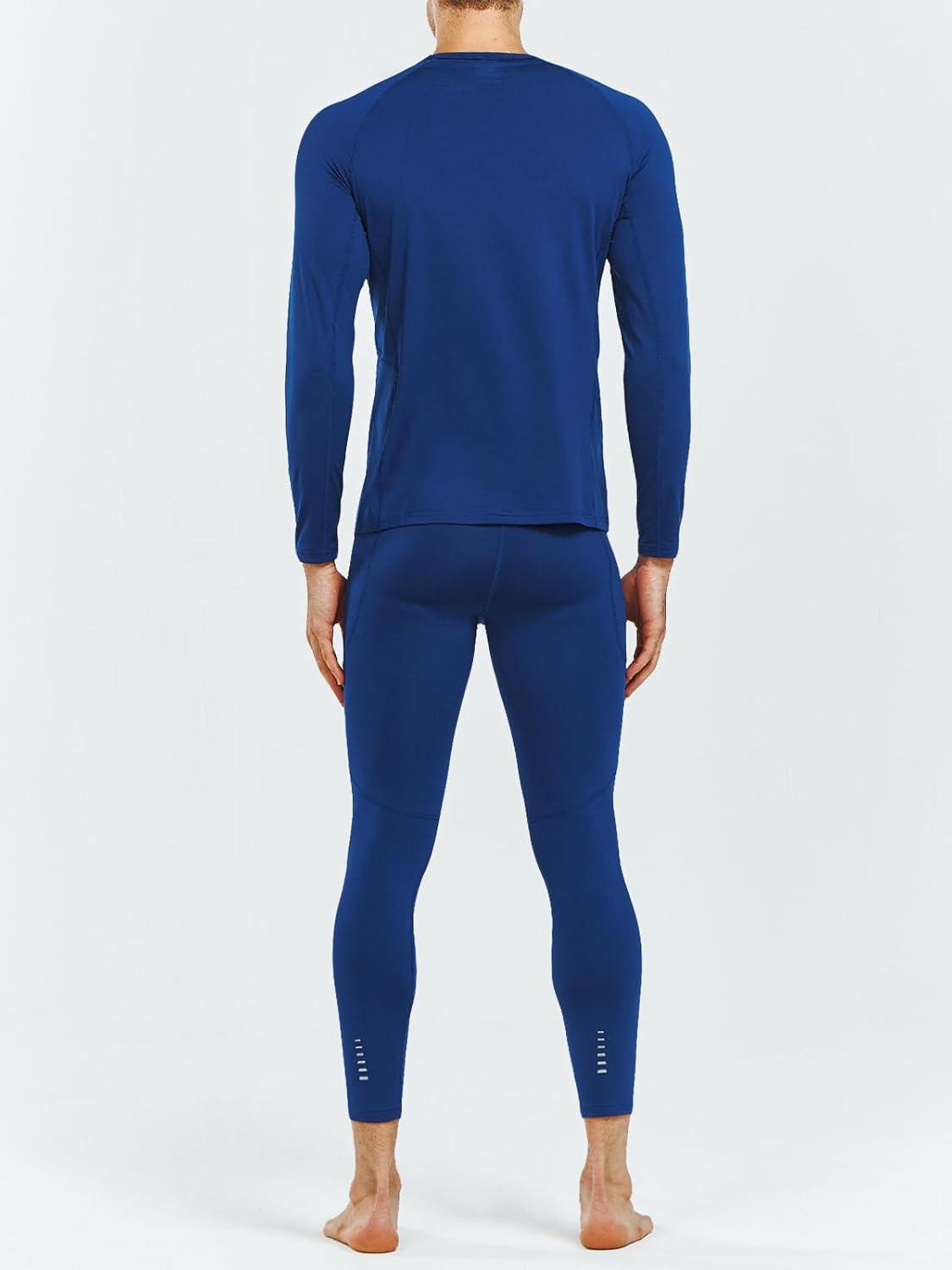 NORTHYARD Thermal Underwear for Men Long Johns Fleece Lined Base Layer Set for Winter Top Bottom with Pockets(Navy)