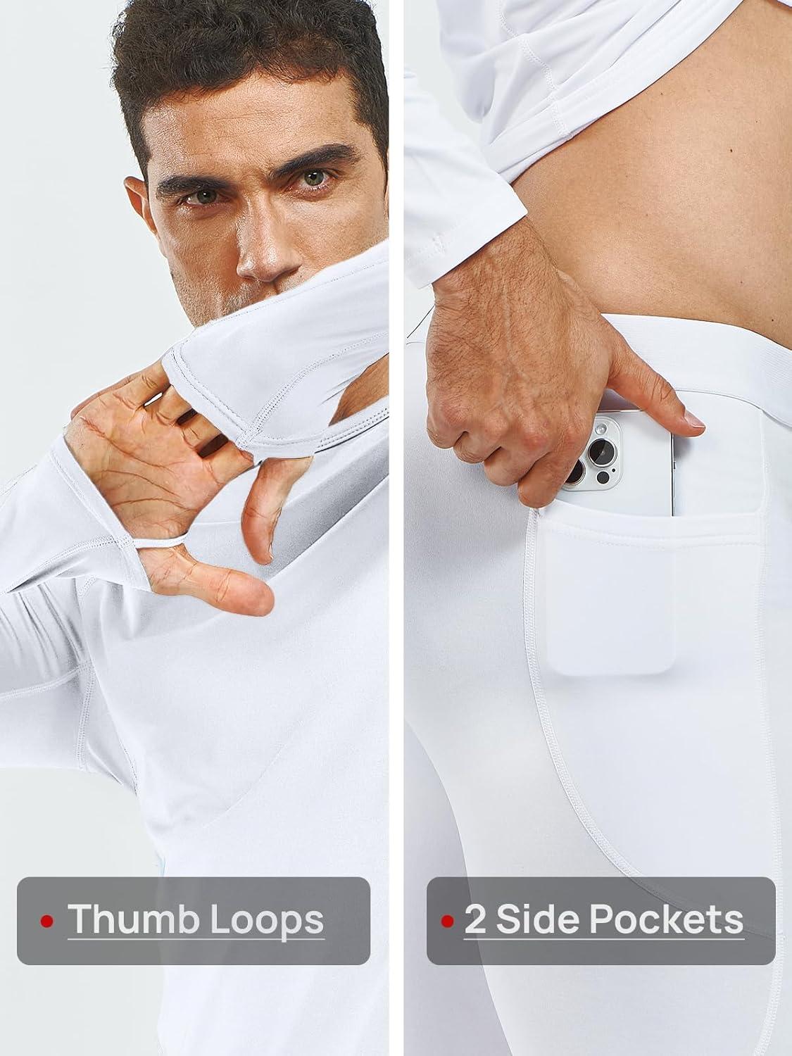 NORTHYARD Thermal Underwear for Men Long Johns Fleece Lined Base Layer Set for Winter Top Bottom with Pockets(White)